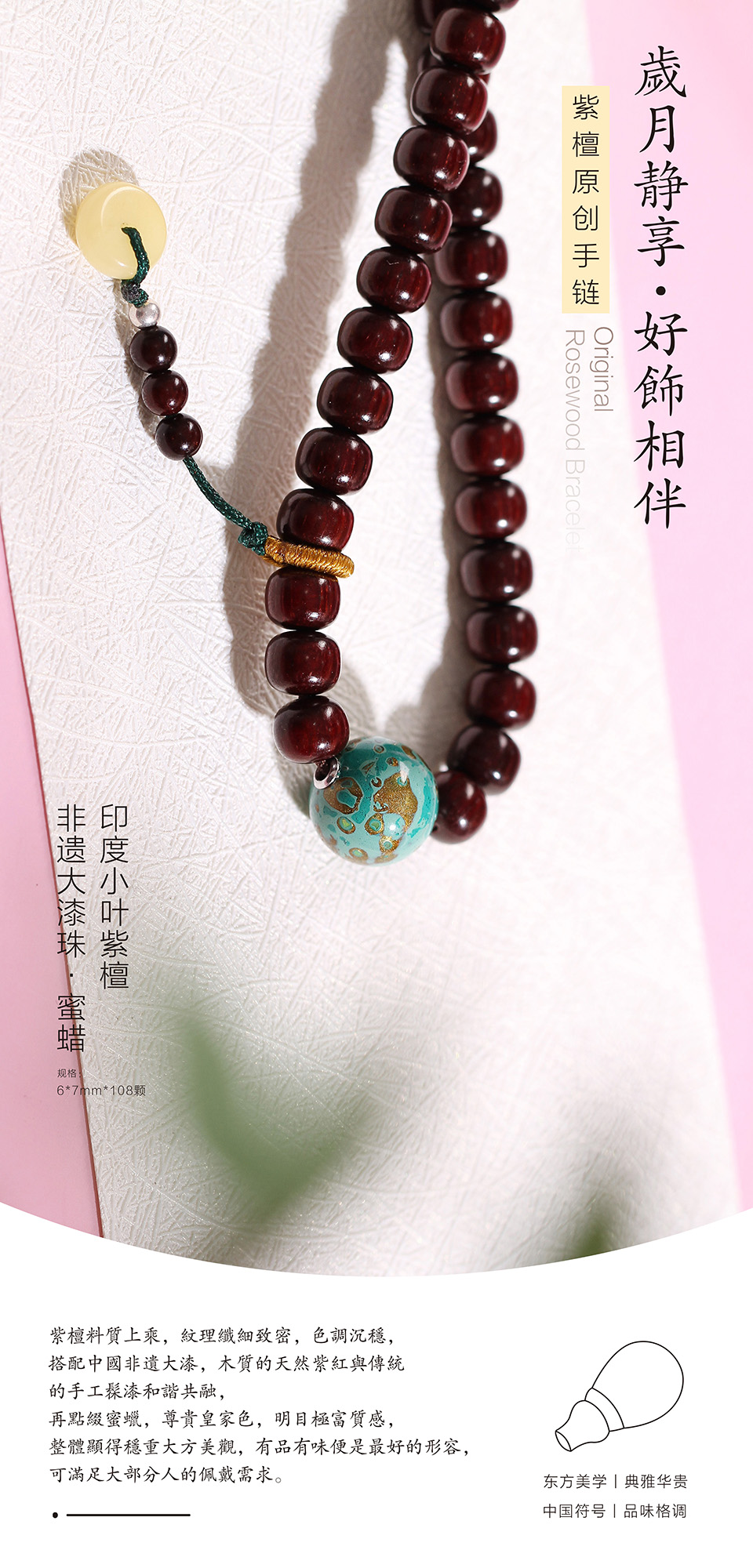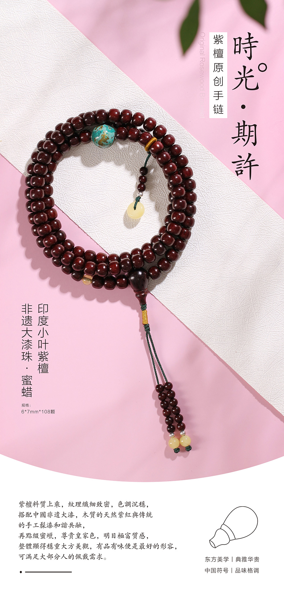 纹理纤细浮动,木质坚硬,致密,成材大料极难得到,色调深沉,显得稳重大方而美观,满足大部分人的佩戴需求。