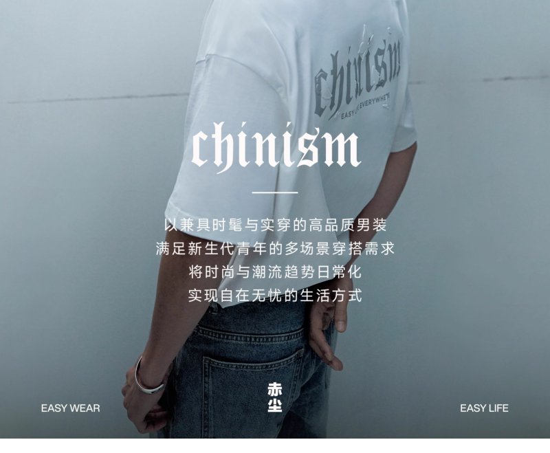 - 中国潮流快时尚男装品牌 CHINISM ,始创于2012年,正式成立于2014年。灵感源自每一位青年的穿衣需求。CHINISM - EASY WEAR