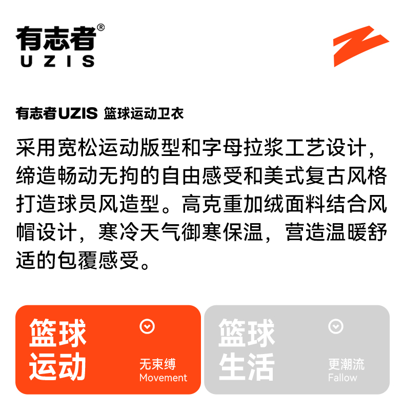 有志者UZIS篮球运动卫衣男士休闲宽松连帽套头衫秋冬保暖上衣血脉