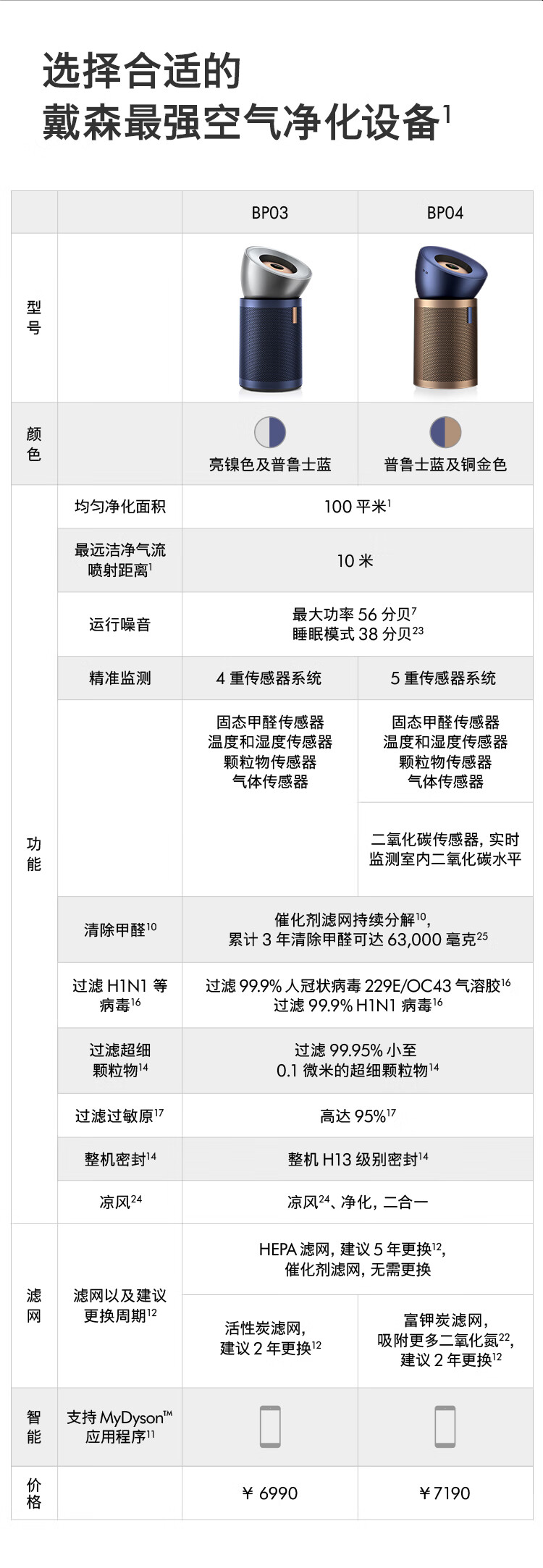 戴森Dyson 空气净化器 BP04 (普鲁士蓝及铜金色)
