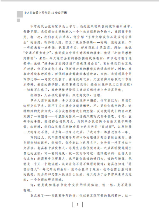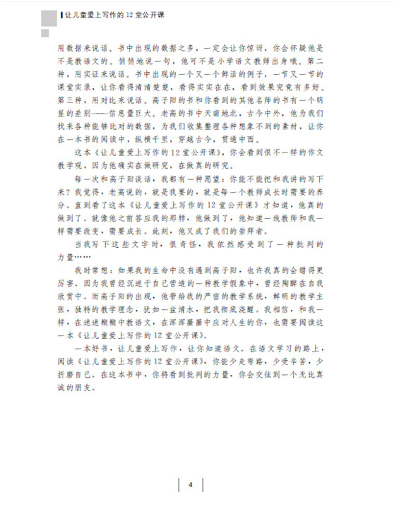 统编版小学语文教材是新的,习作教材的编写方式、内容等不少是百年现代语文课本所没有的,如习作单元。如何把这个教材教得风生水起,让每个孩子爱上写作呢?新的内容应该用新的方式来教。作者根据多年实践,把最能让全体学生爱上写作的教学范式,用12堂课的方式,从多读书、什么是写作、为何写作、用五课时慢教课内习作、“20个问题法”解读并重构教材、“十有作文本”、课文中的写作智慧、课外作文实践、学生作品标准、老师要做的三种准备及几项特别的训练等给予一线老师原创的、简单的、可操作的、系列化的教学策略。
