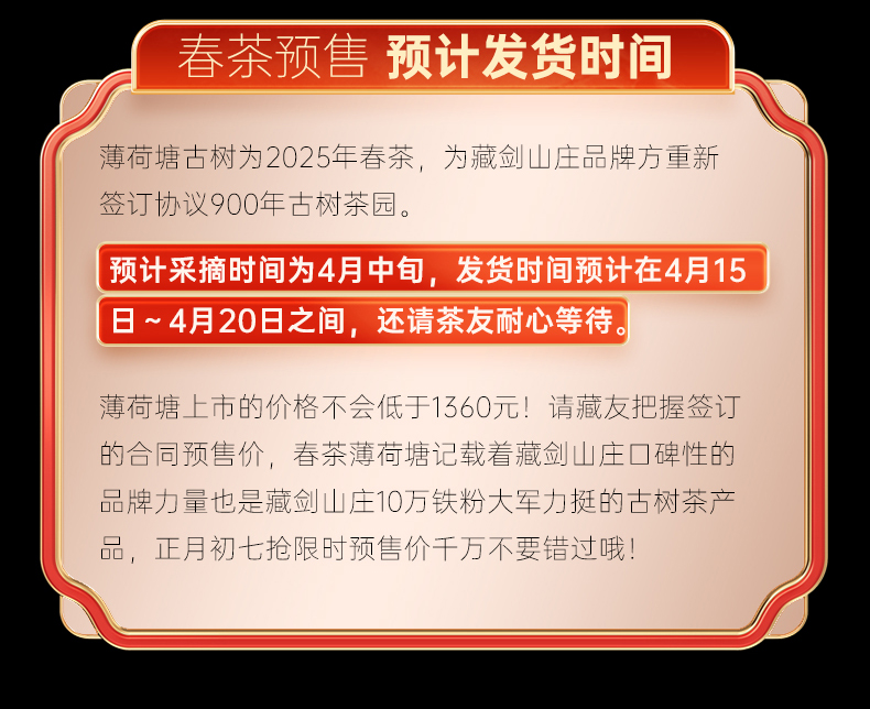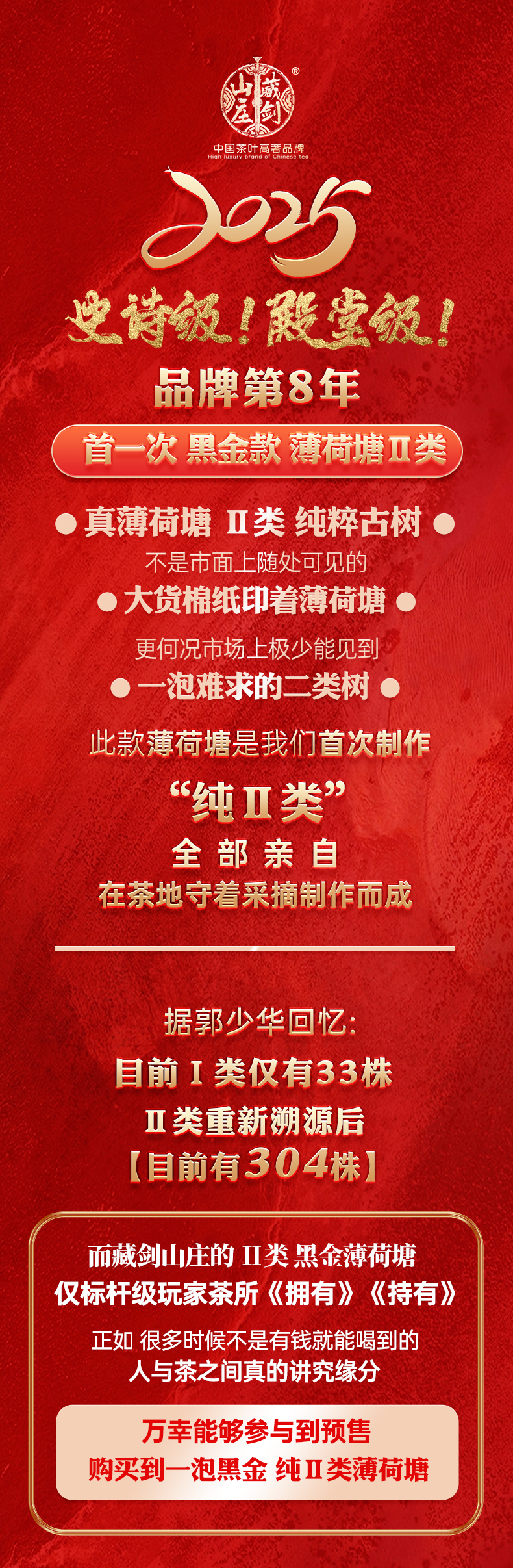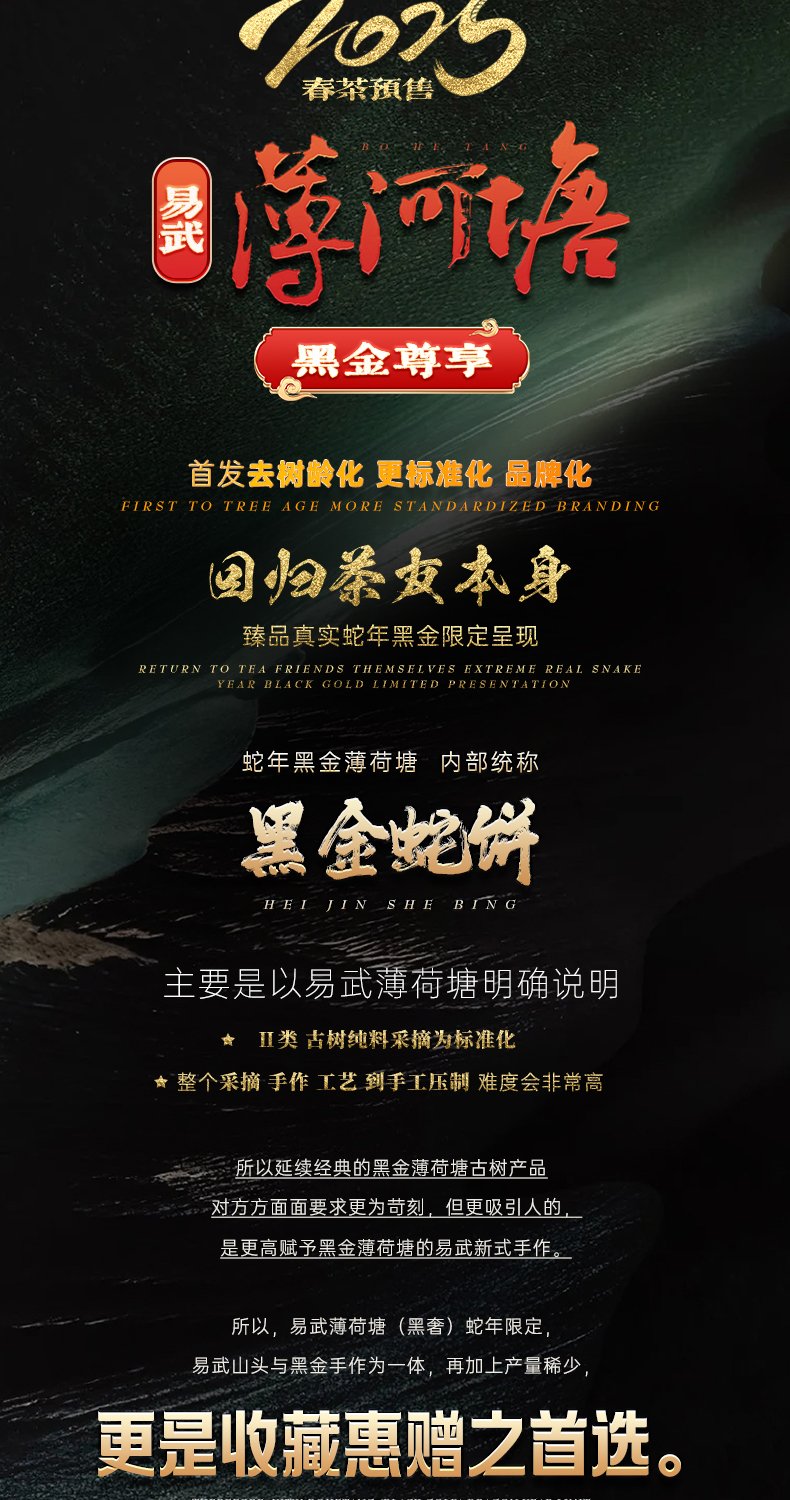 藏剑山庄2025年蛇年限定 易武薄荷塘古树纯料!200克饼茶 预售抢5片赠1片!20片赠5片!