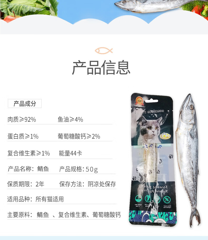 麦斯蒂猫咪鱼零食蒸煮鲭鱼营养丰富袋装50g/包
