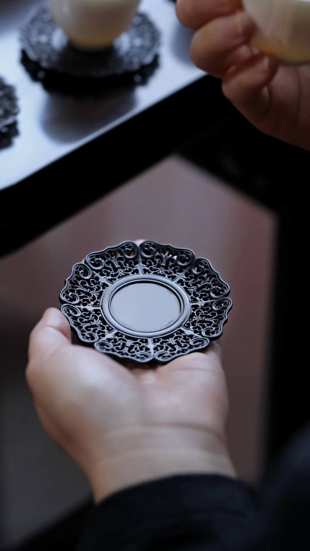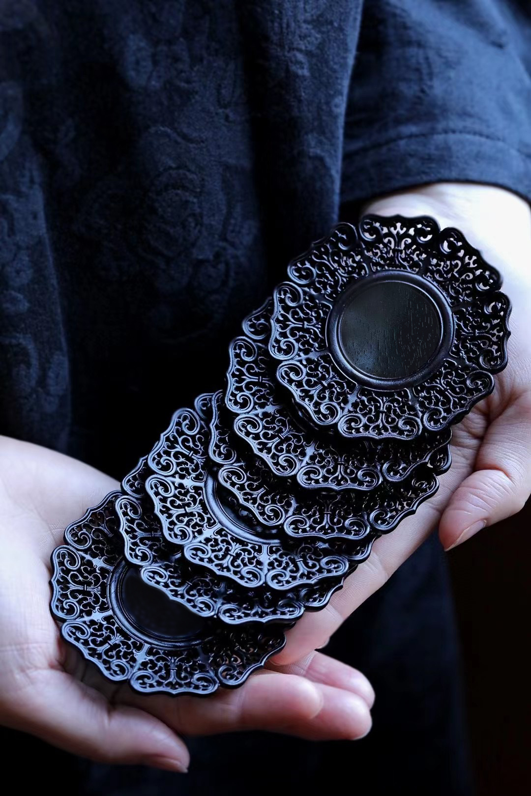 名称:透雕缠枝莲纹杯垫 6个/套