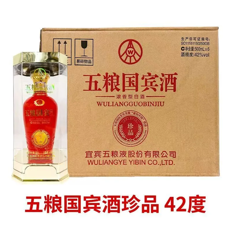 五粮液出品五粮国宾珍品 42度浓香型白酒 整箱500ml*6瓶包邮