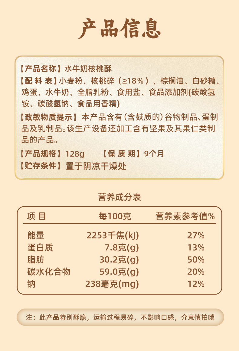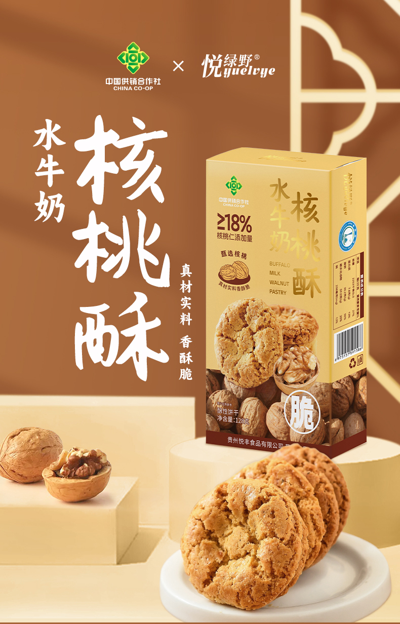 【贵州帮扶】悦绿野丨水牛奶核桃酥 128g/盒*3盒