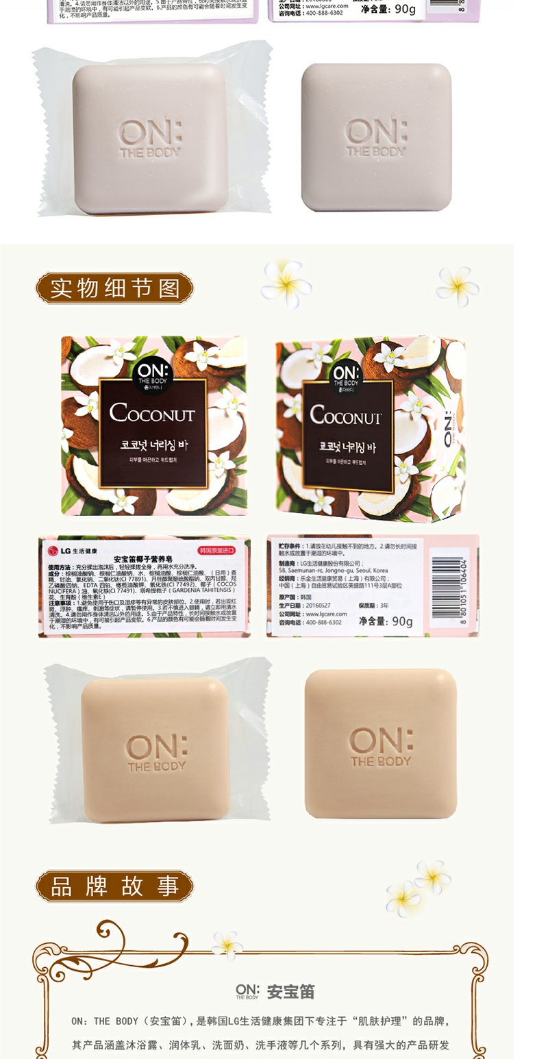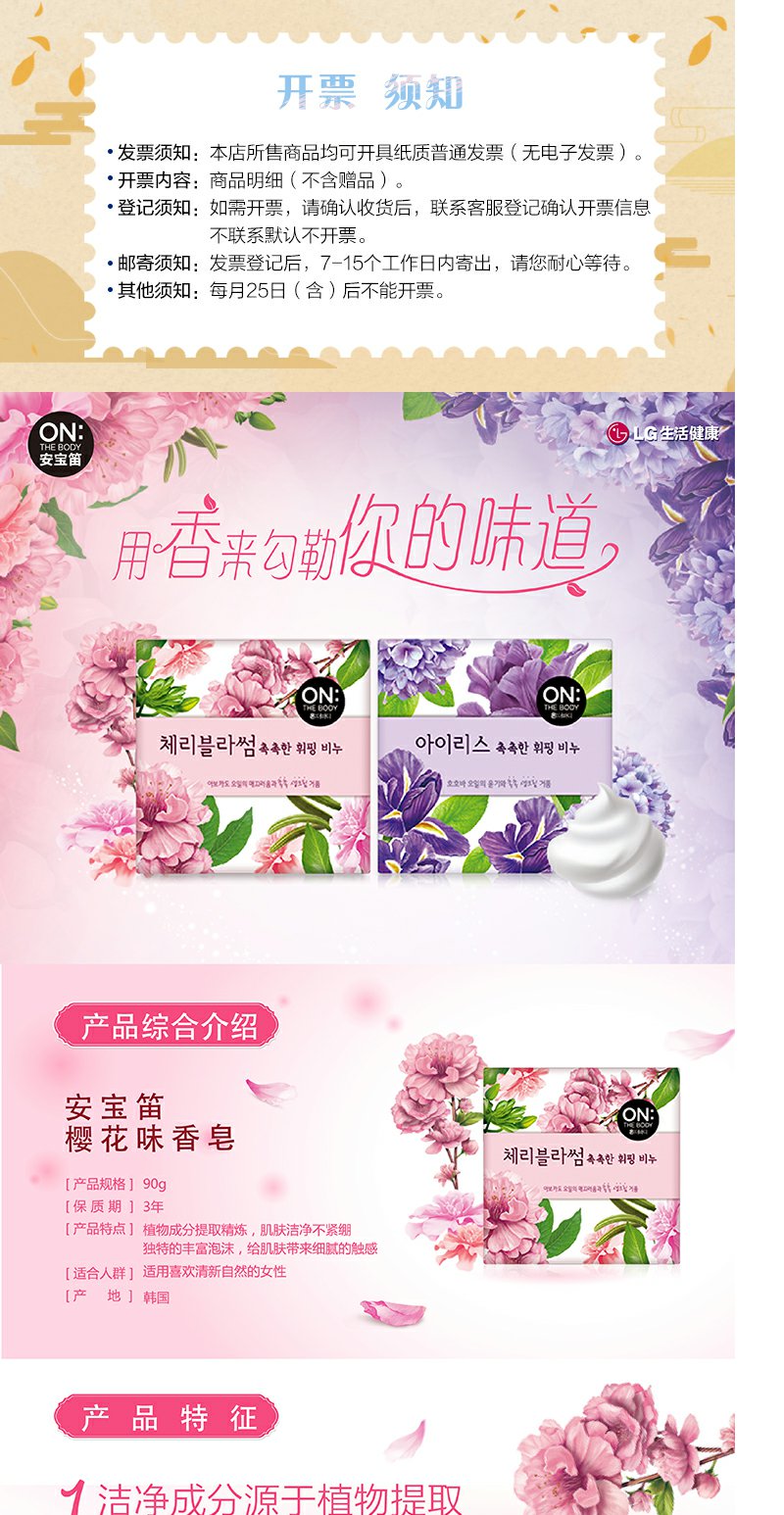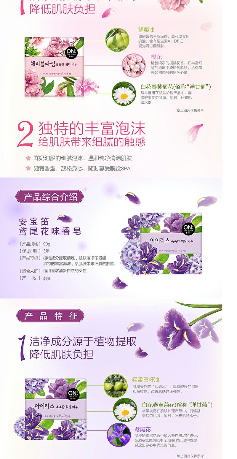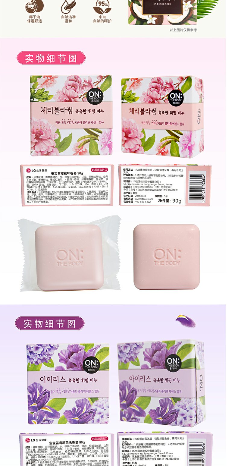 安宝笛 LG韩国进口香皂沐浴皂男女润肤皂浴皂樱花鸢尾花柠檬椰子薰衣草