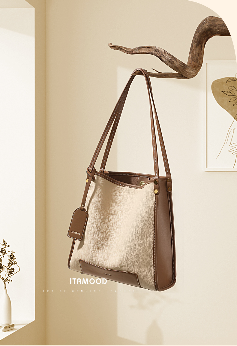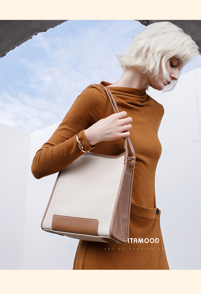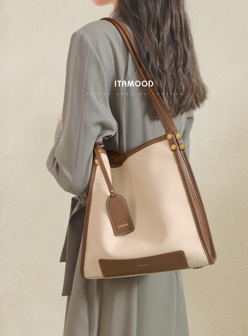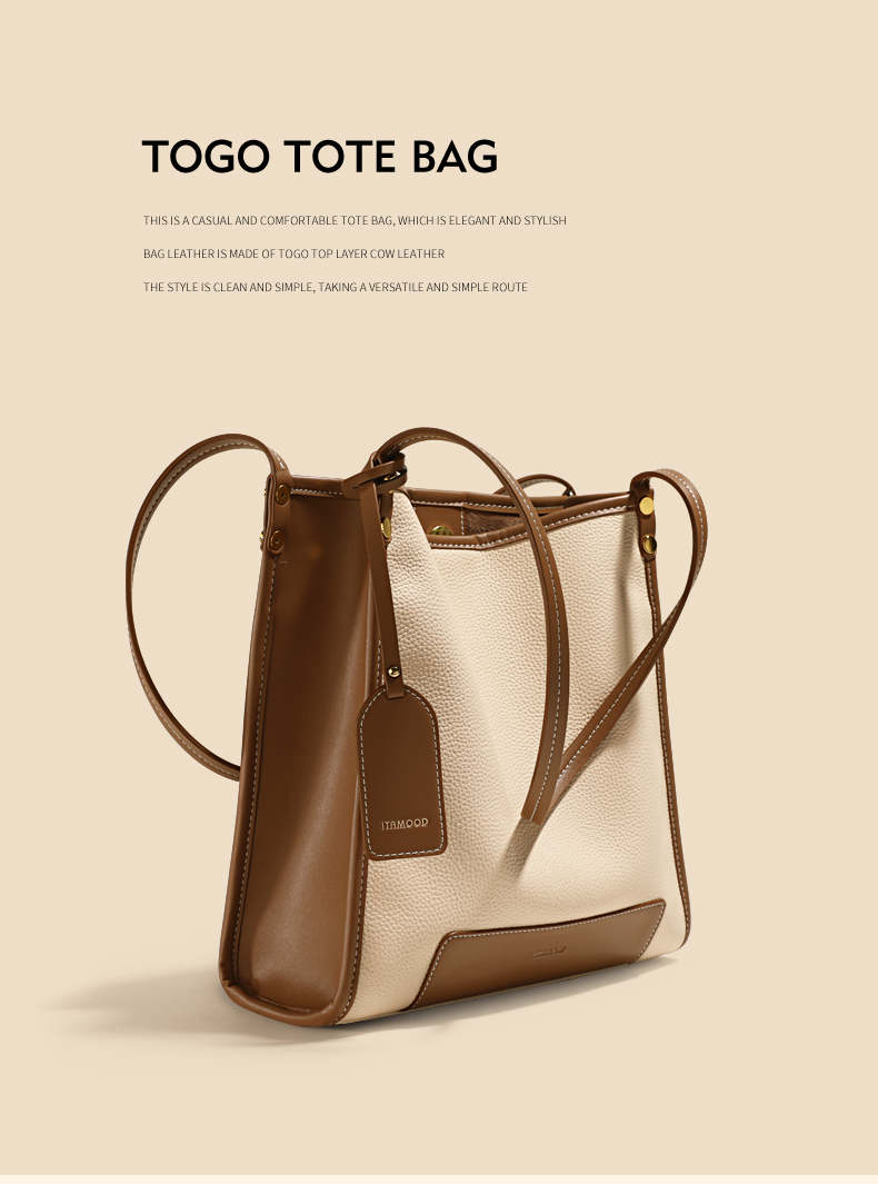 togo牛皮手提托特包购物袋水桶包女小众单肩腋下包包