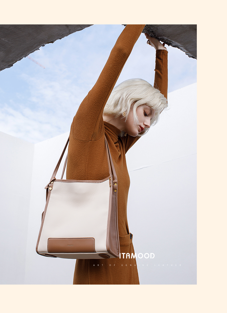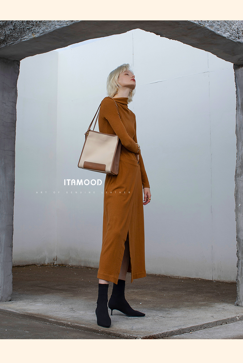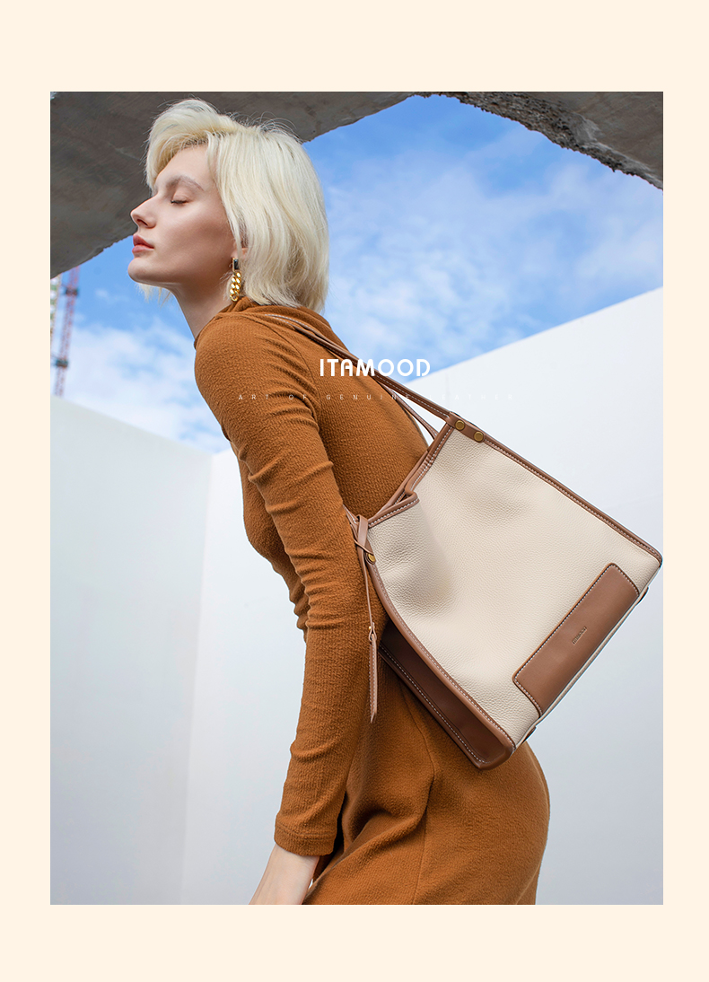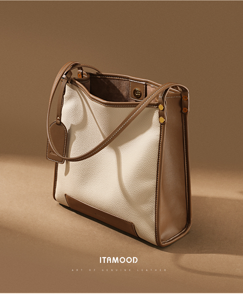 togo牛皮手提托特包购物袋水桶包女小众单肩腋下包包