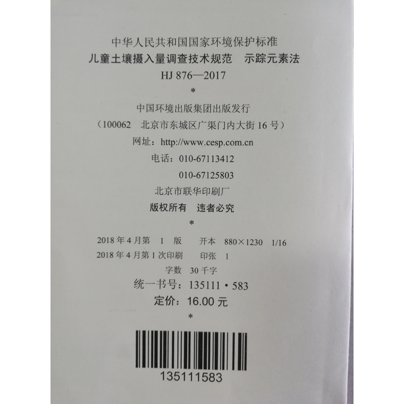 HJ 876—2017儿童土壤摄入量调查技术规范示踪元素法 国家标准GB 环境保护 环境科学 135111583