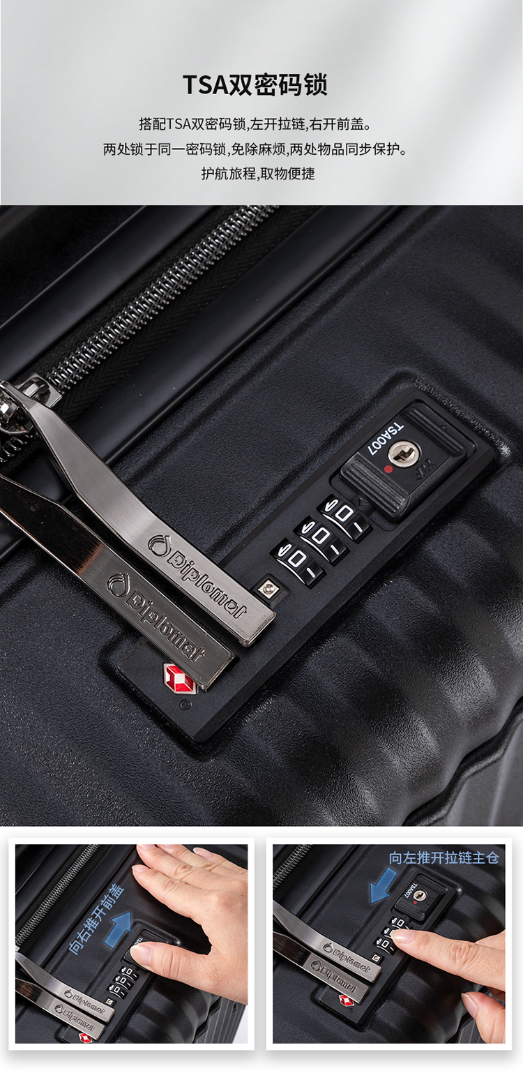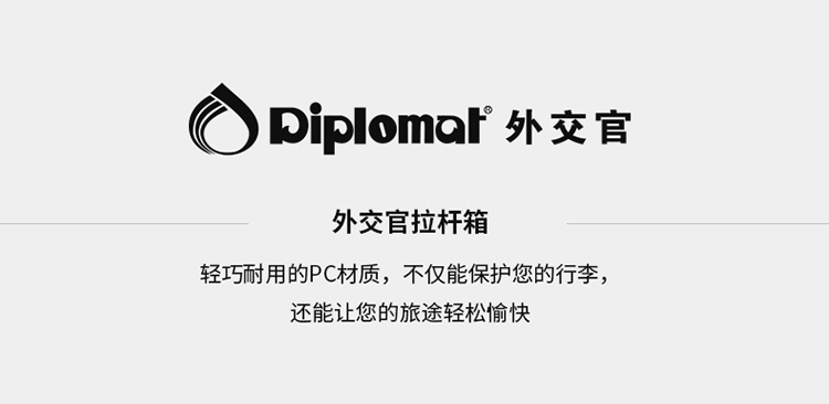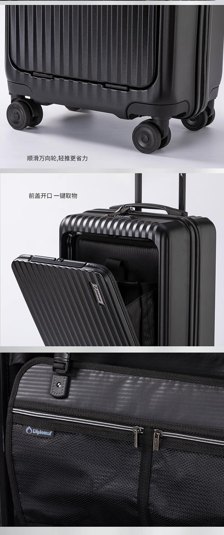 Diplomat外交官经典行李箱男女商务旅行箱可登机轻便拉杆箱20英寸 前开盖- 拉链 20寸登机箱-DS-13099