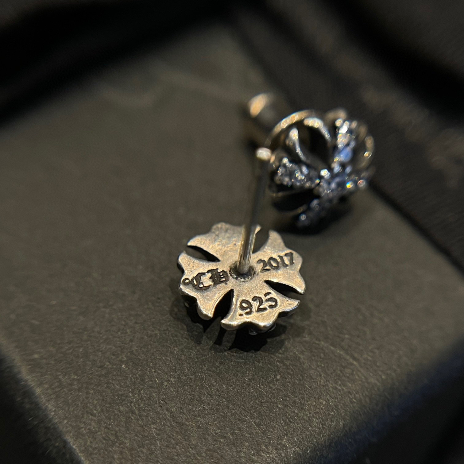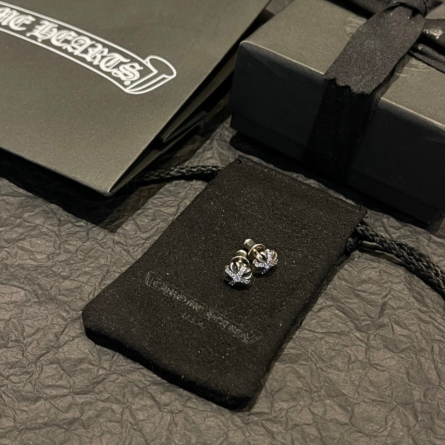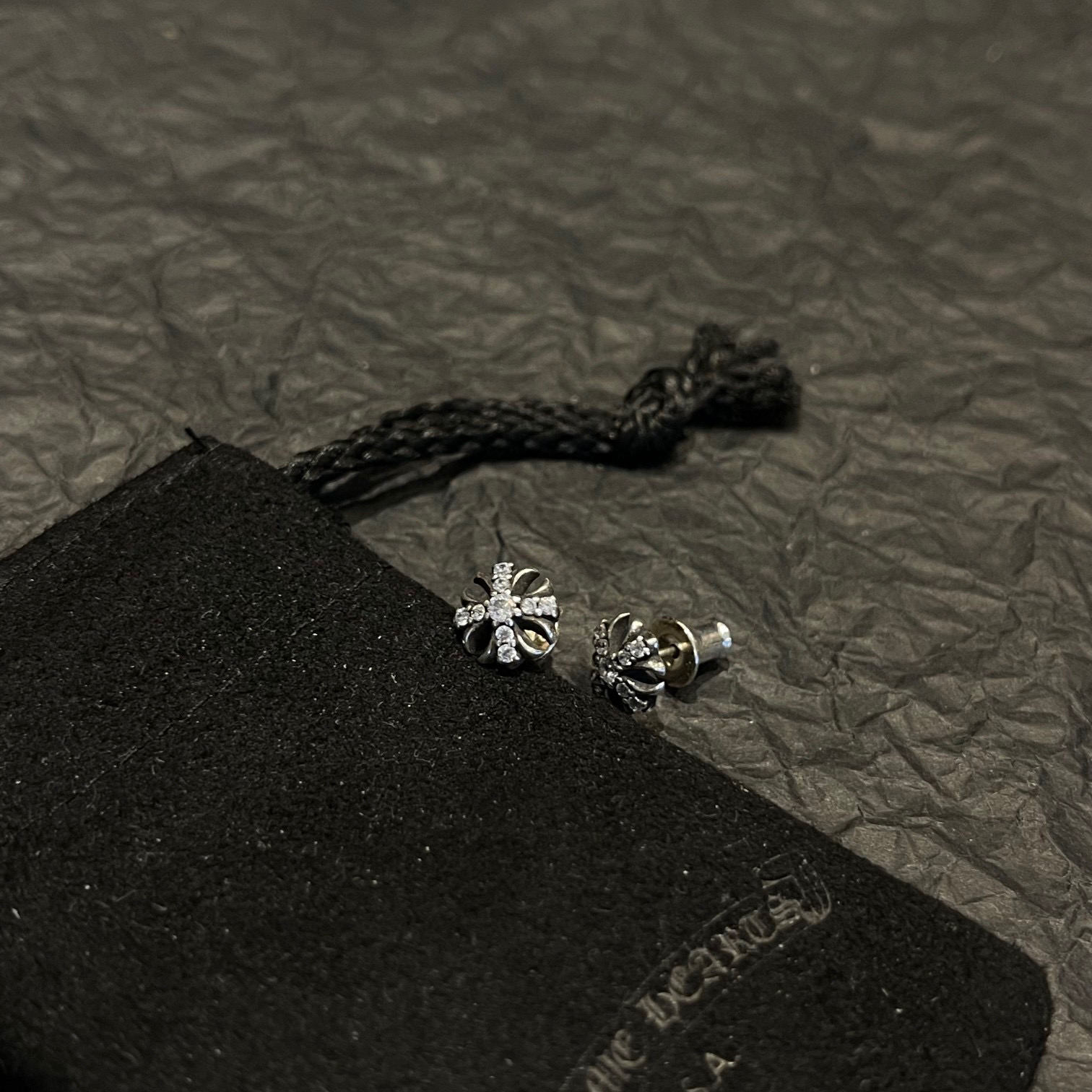 满钻十字花耳钉 纯银材质 街头嘻哈 手工制作