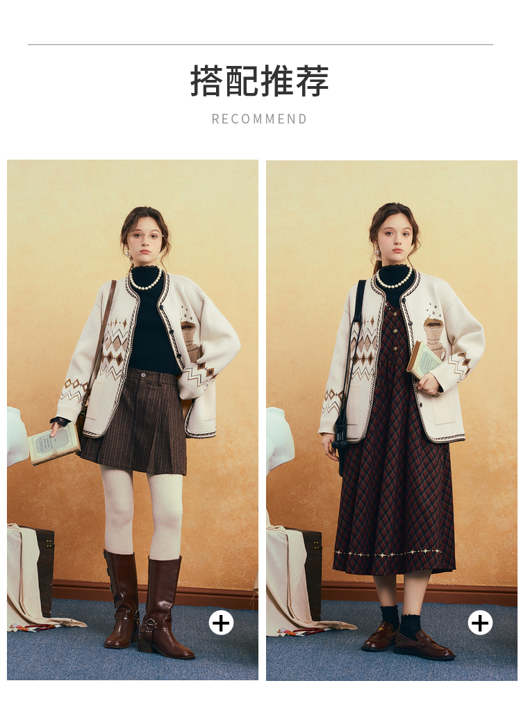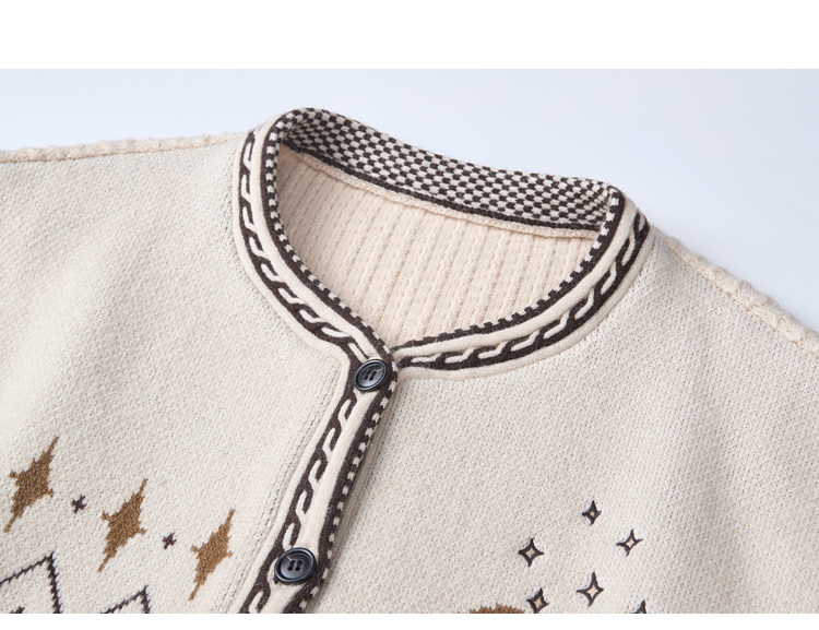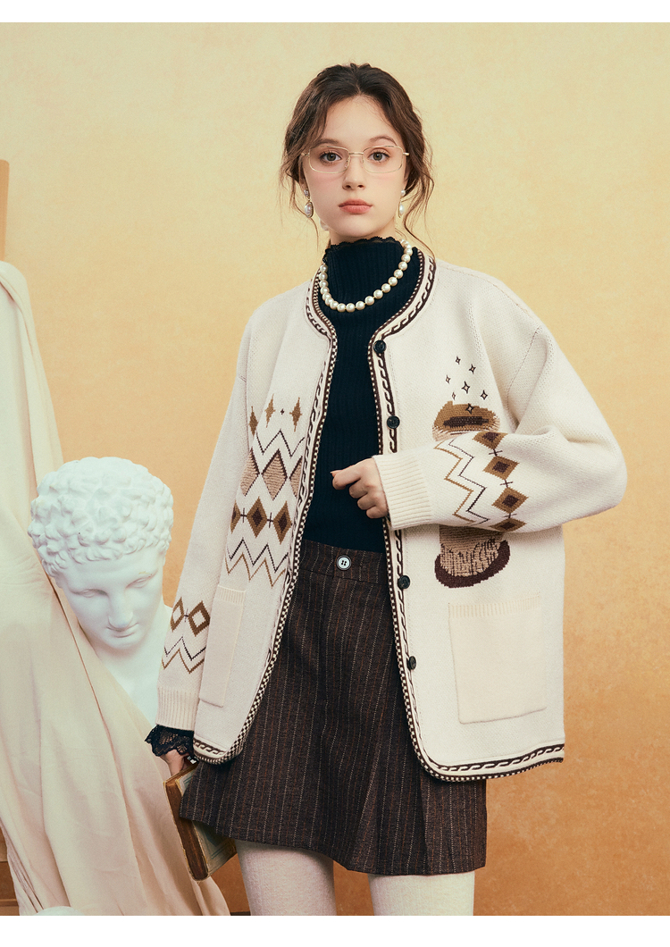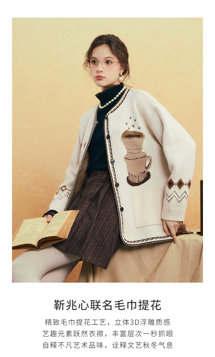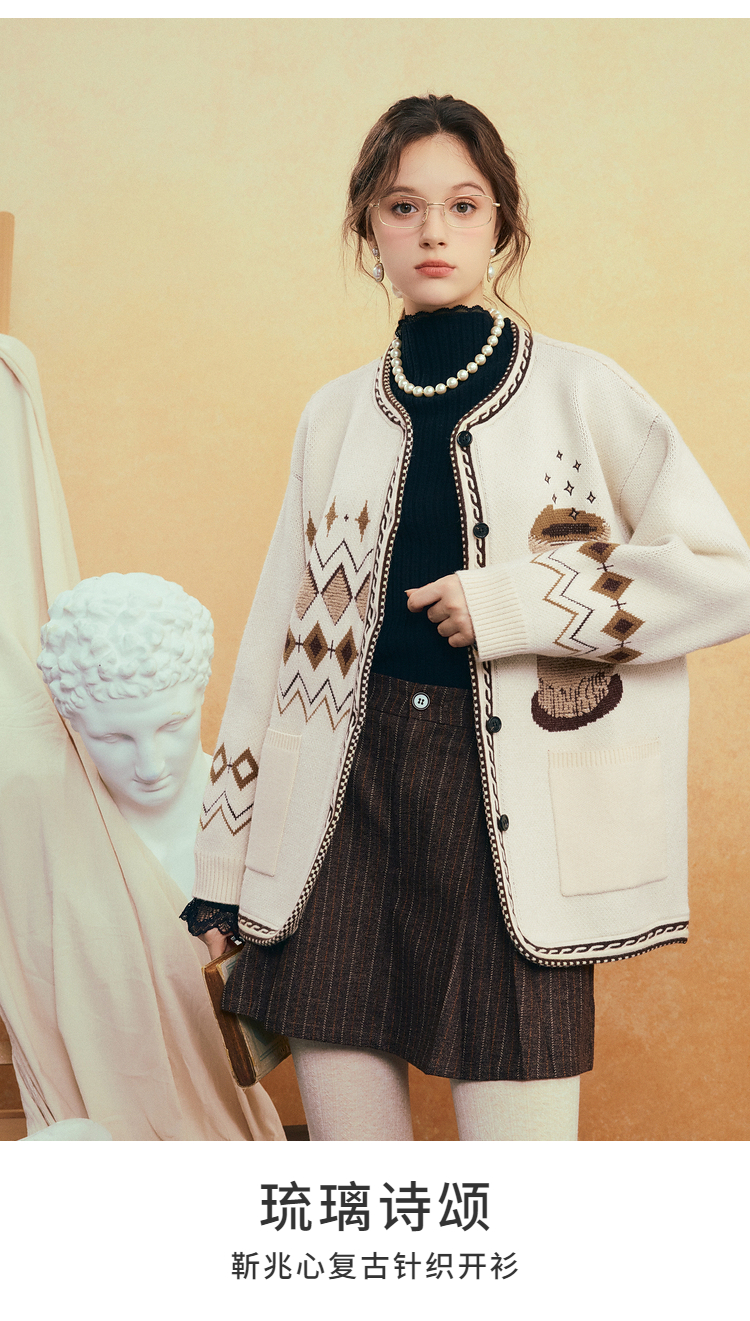 两三事 琉璃诗颂 2025冬季新款优雅几何图案提花毛衣外套女宽松
