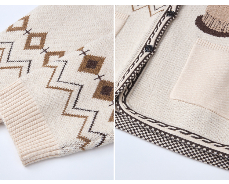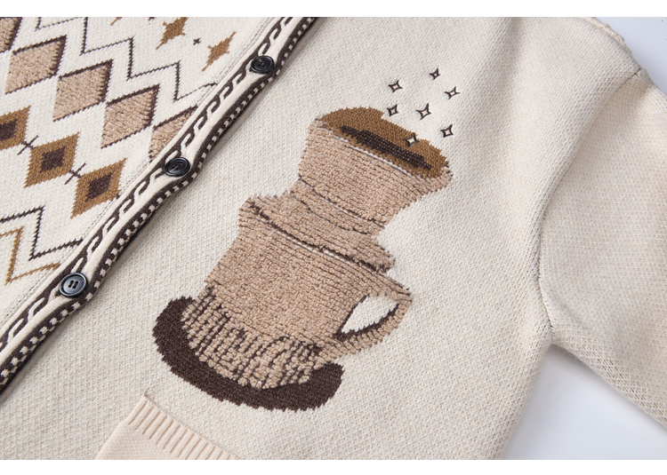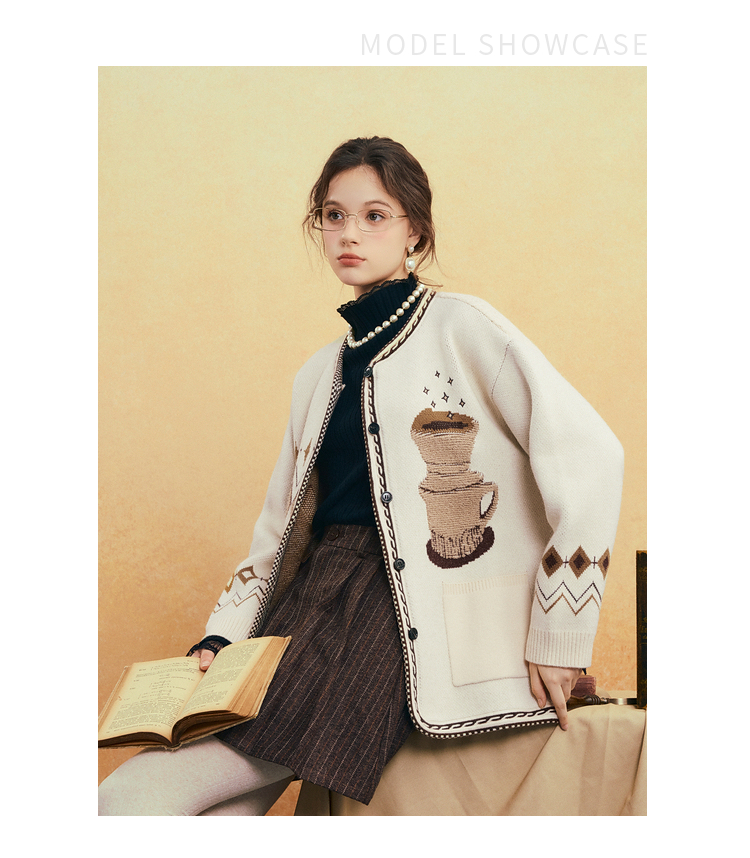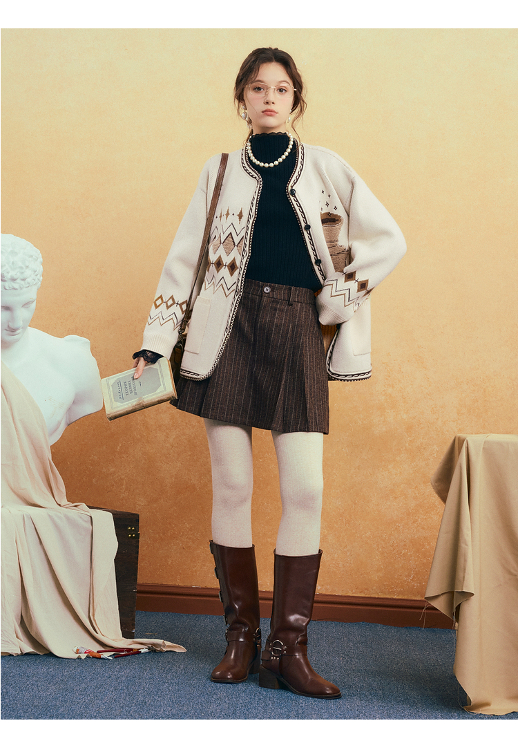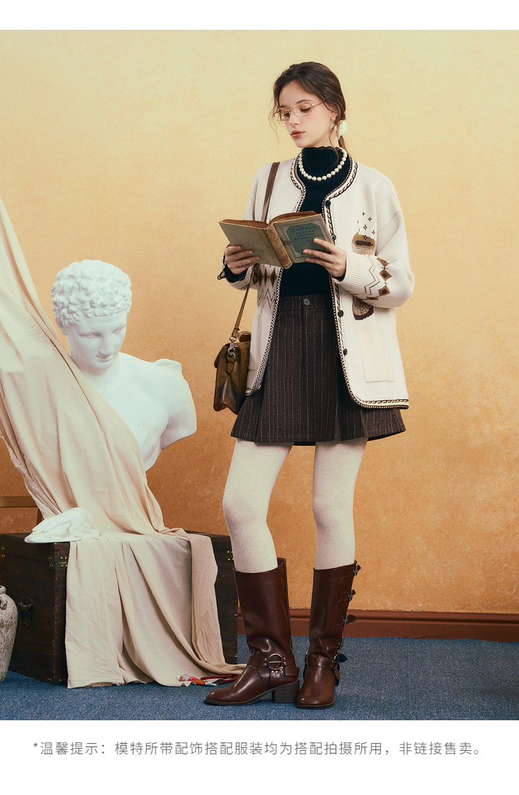两三事 琉璃诗颂 2025冬季新款优雅几何图案提花毛衣外套女宽松