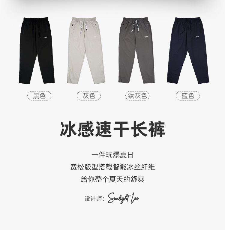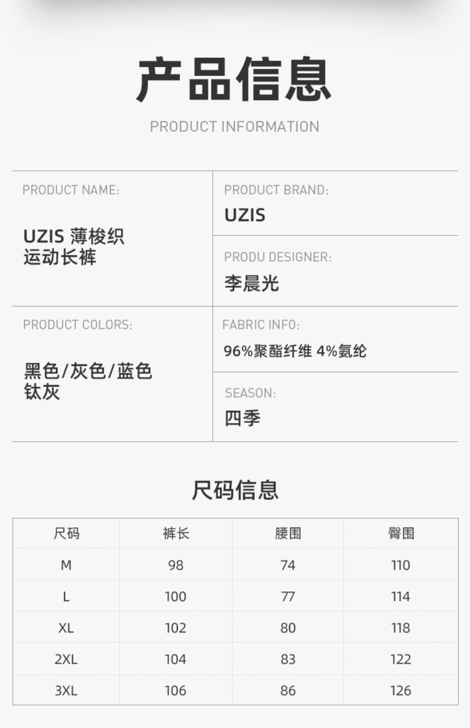 UZIS梭织运动长裤男夏季薄款宽松潮直筒速干冰感健身训练篮球裤子