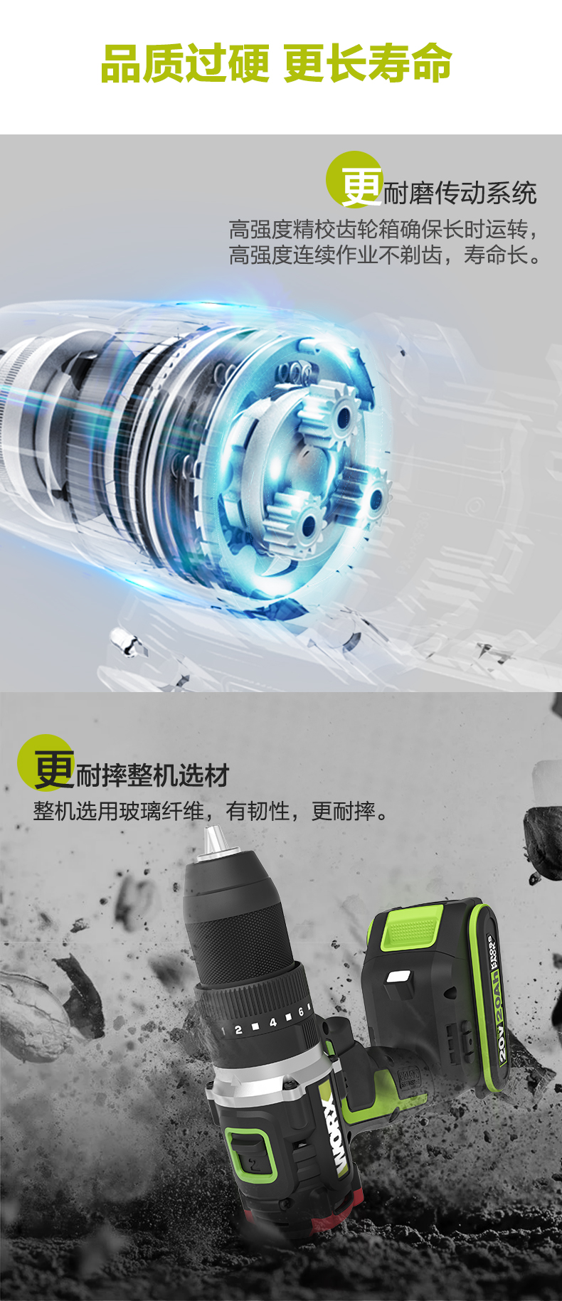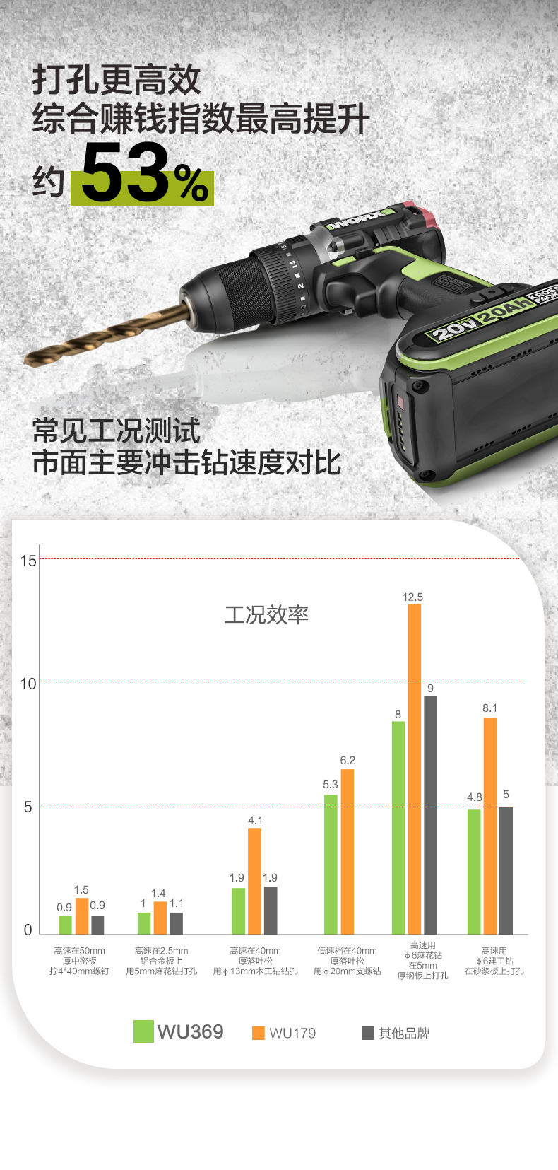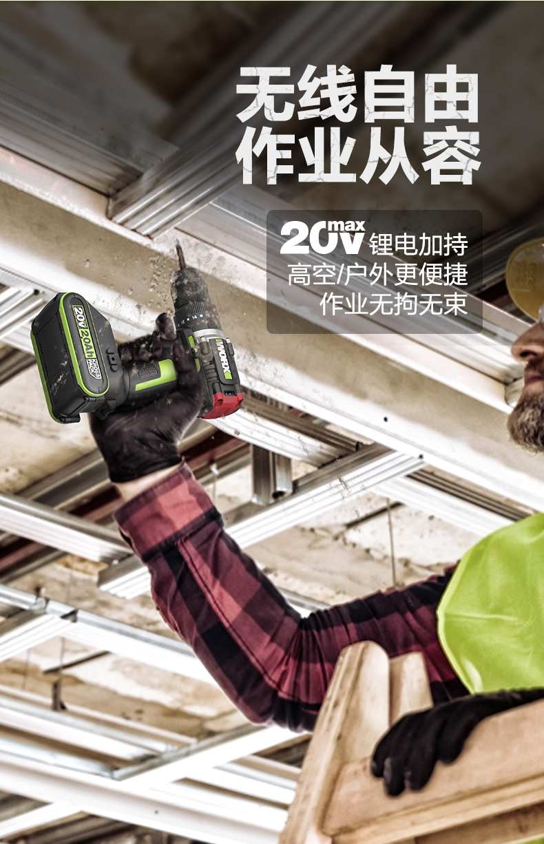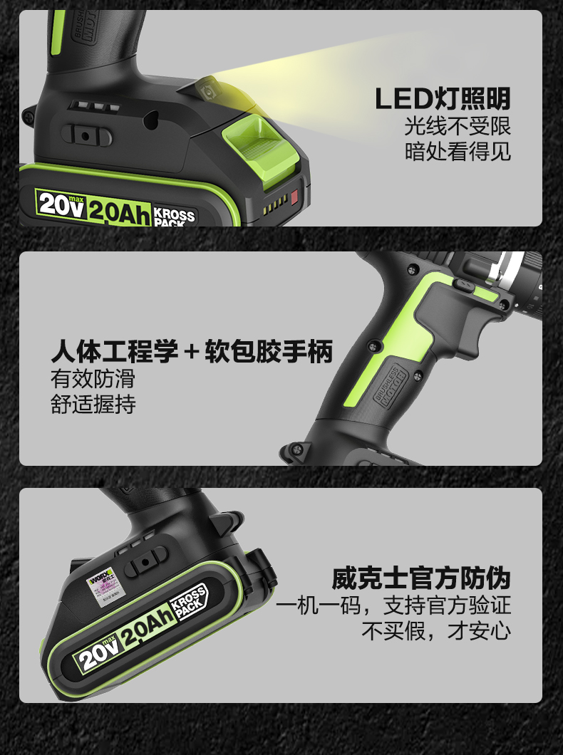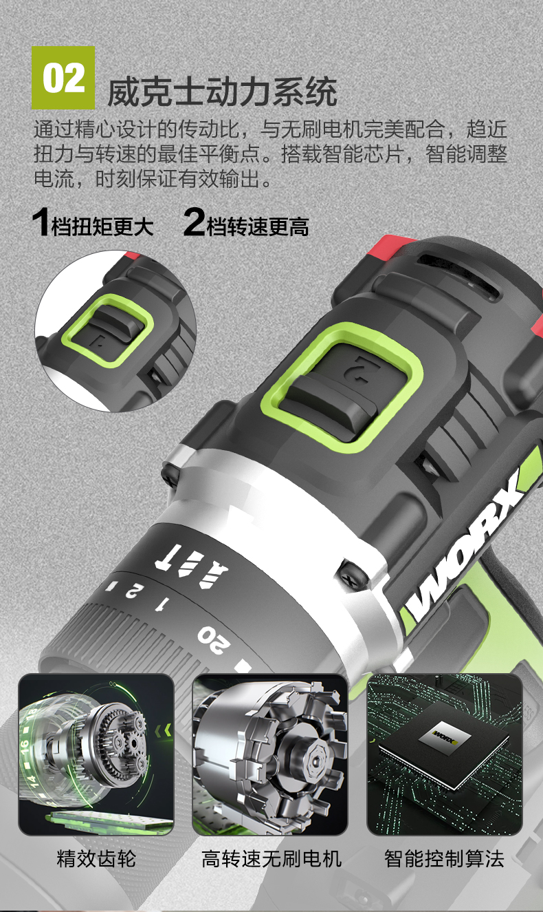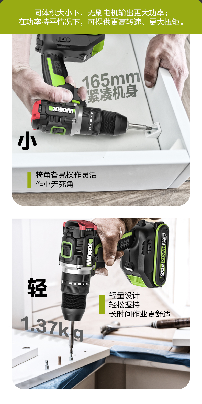 威克士WU369 20V无刷锂电冲击钻小型充电式手电钻大功率电动工具