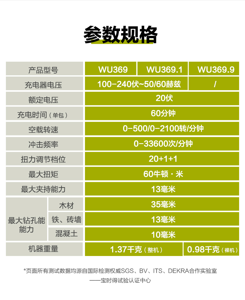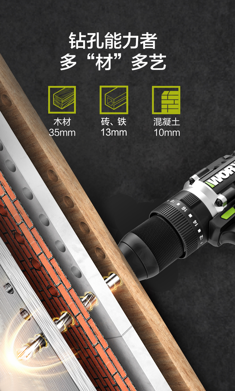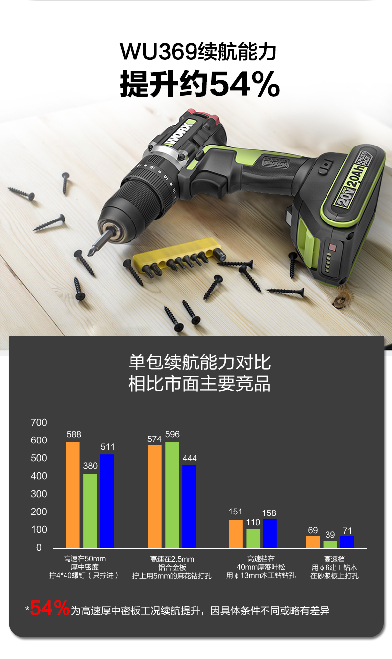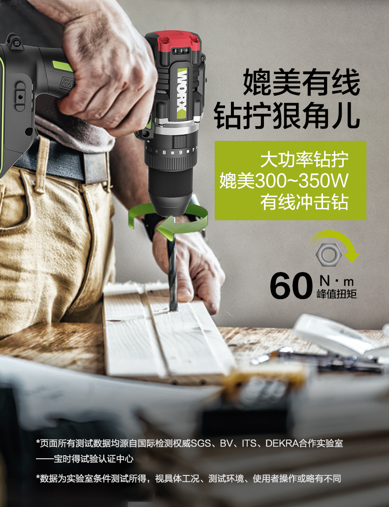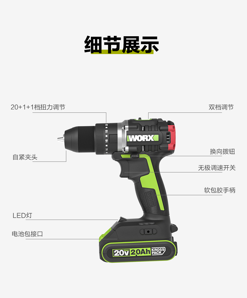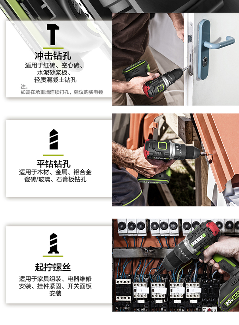 威克士WU369 20V无刷锂电冲击钻小型充电式手电钻大功率电动工具