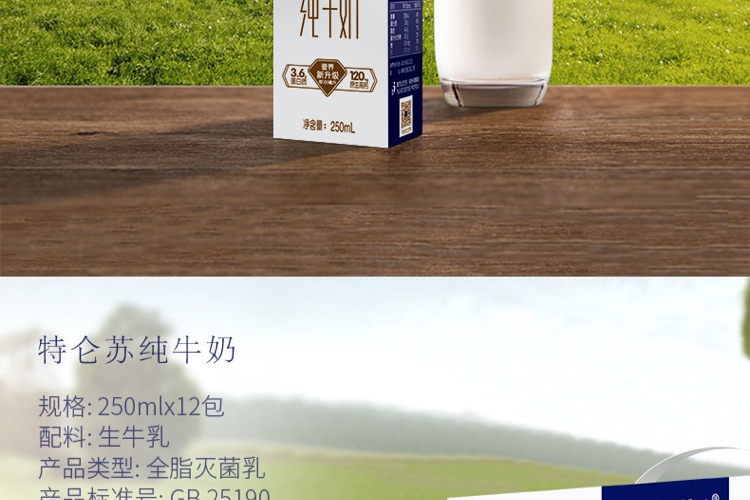 【自营】蒙牛特仑苏纯牛奶250ml*12盒