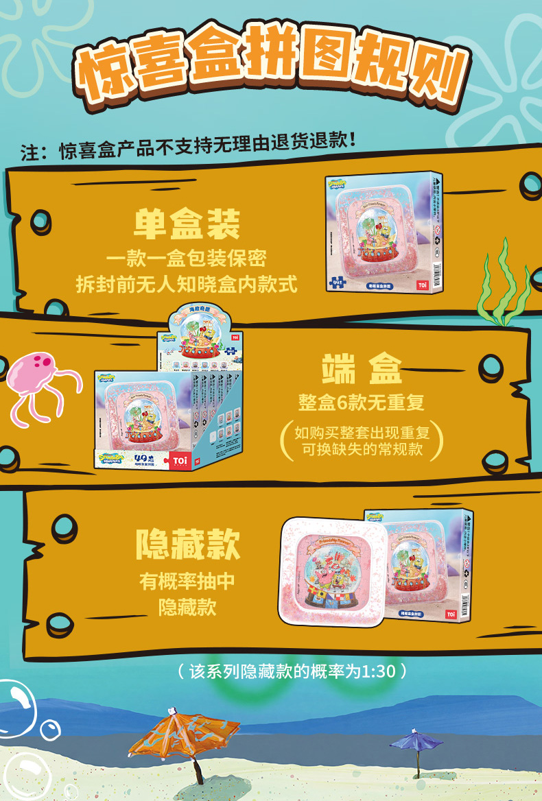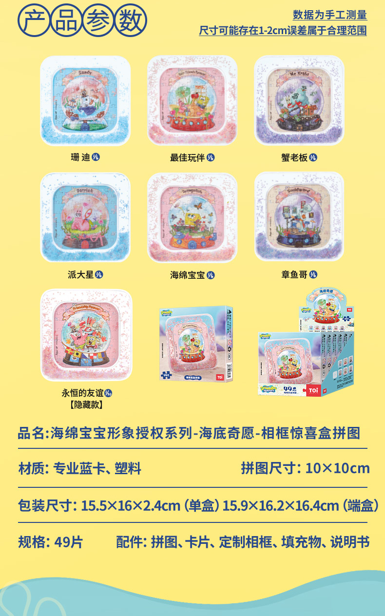 TOi图益-海绵宝宝形象授权系列-海底奇愿-相框盲盒拼图(拍6发端盒)
