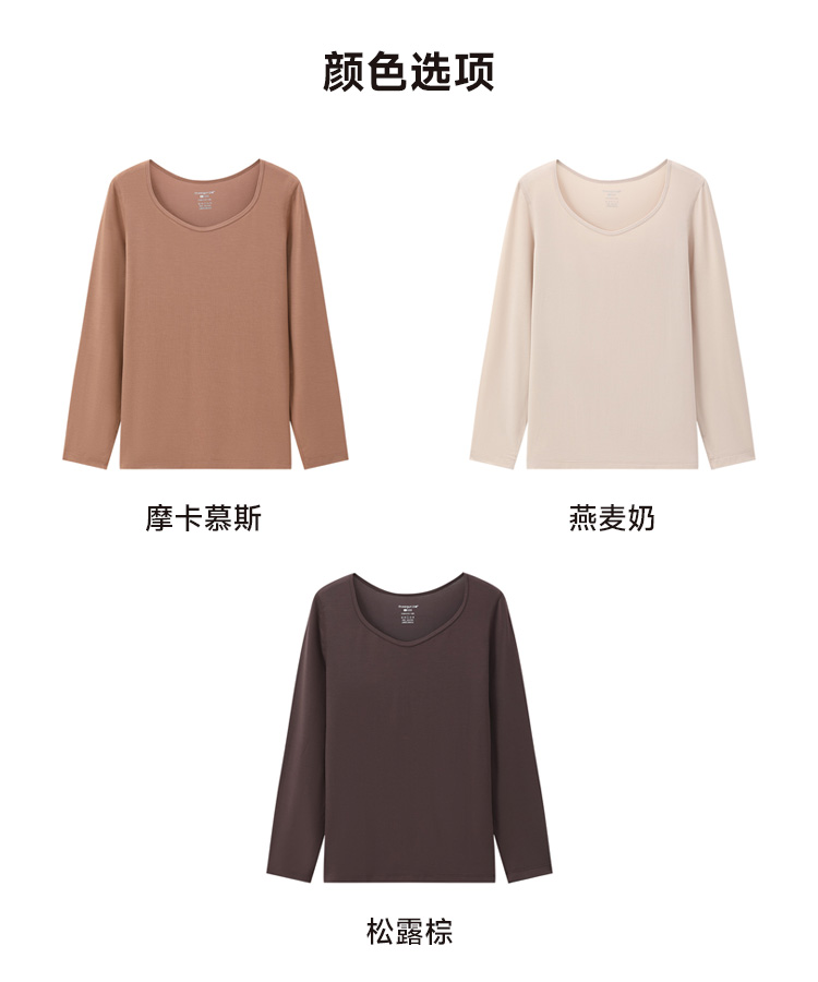 Threegun三枪 零碳莫代尔钻石领长袖女士打底衫-T20065A01
