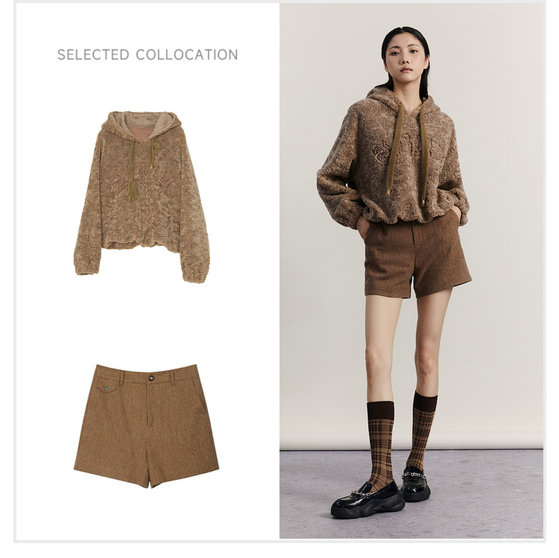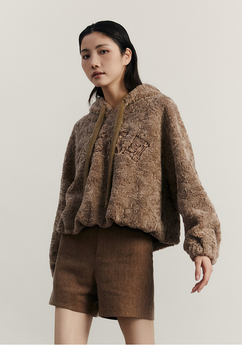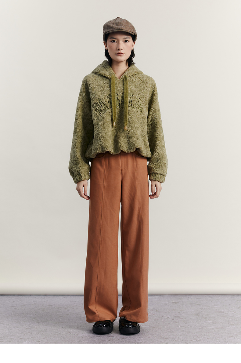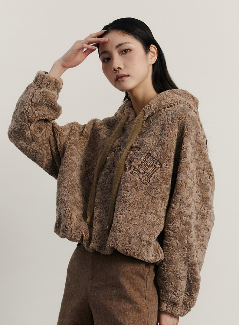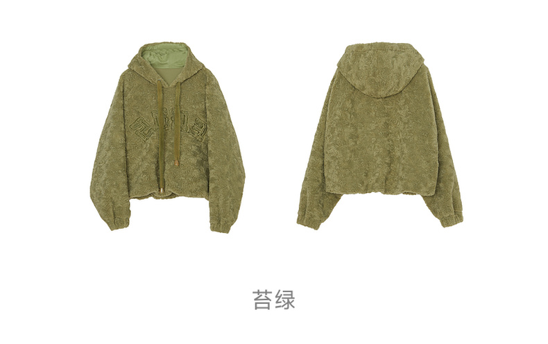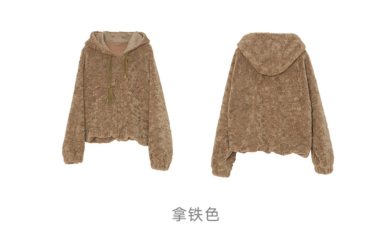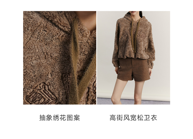 谜底毛毛卫衣女2023冬新品复古绣花连帽宽松短款长袖234MV1485