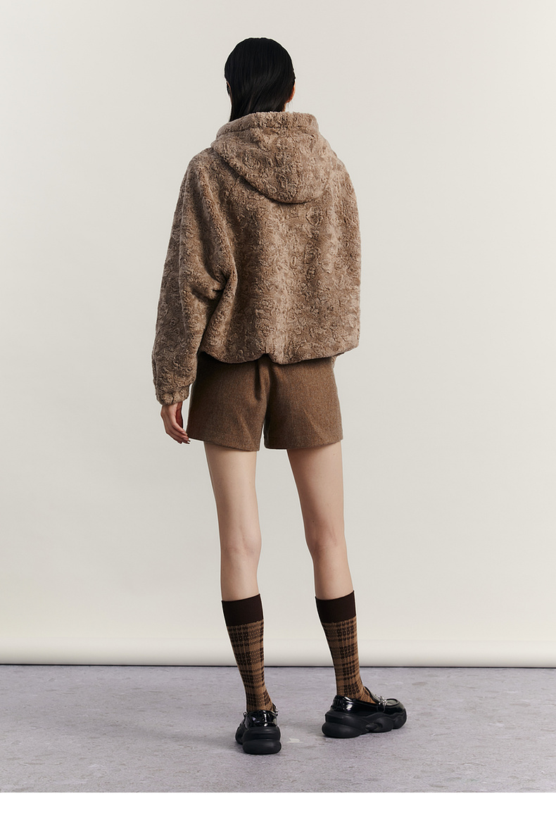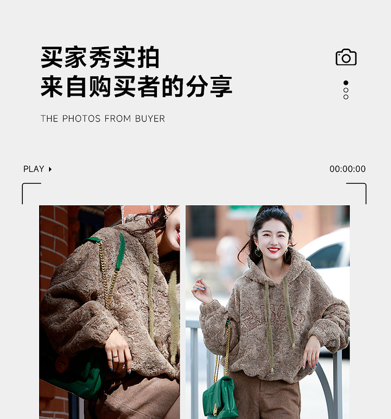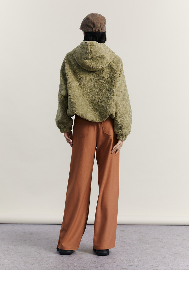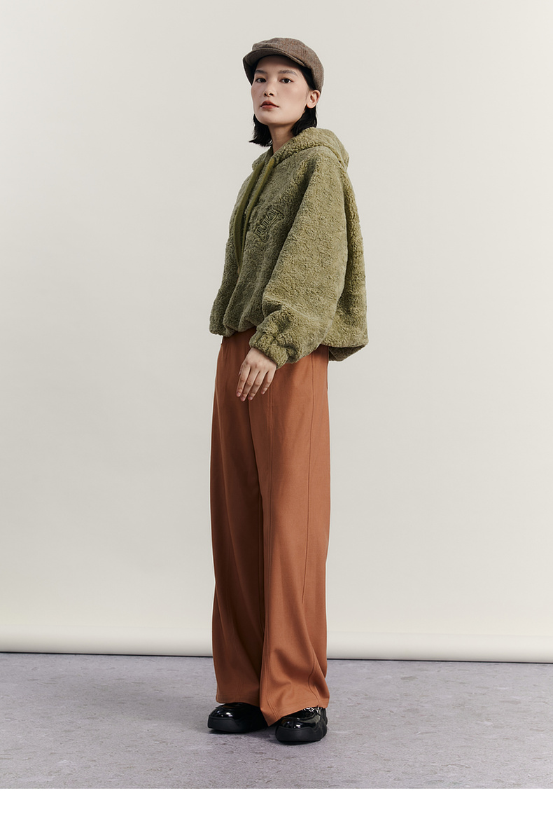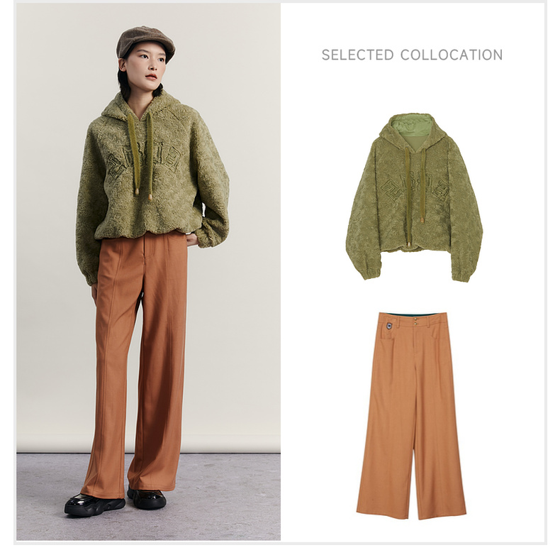 谜底毛毛卫衣女2023冬新品复古绣花连帽宽松短款长袖234MV1485
