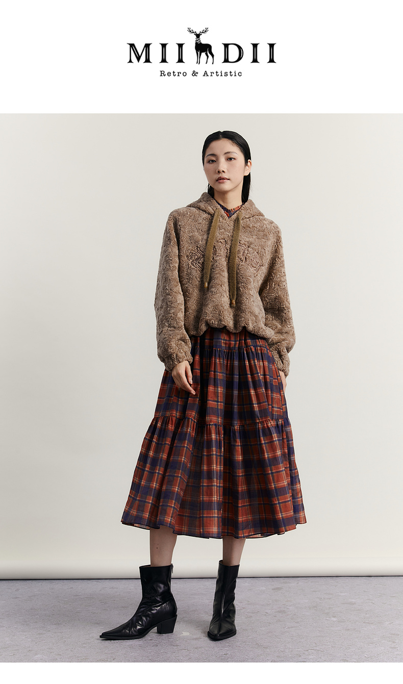 谜底格子围巾2025冬新品流苏慵懒率性格纹保暖大围巾女254MQ1953