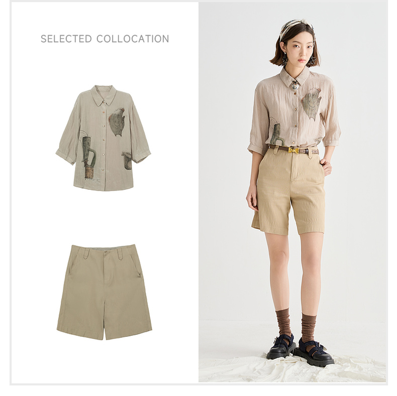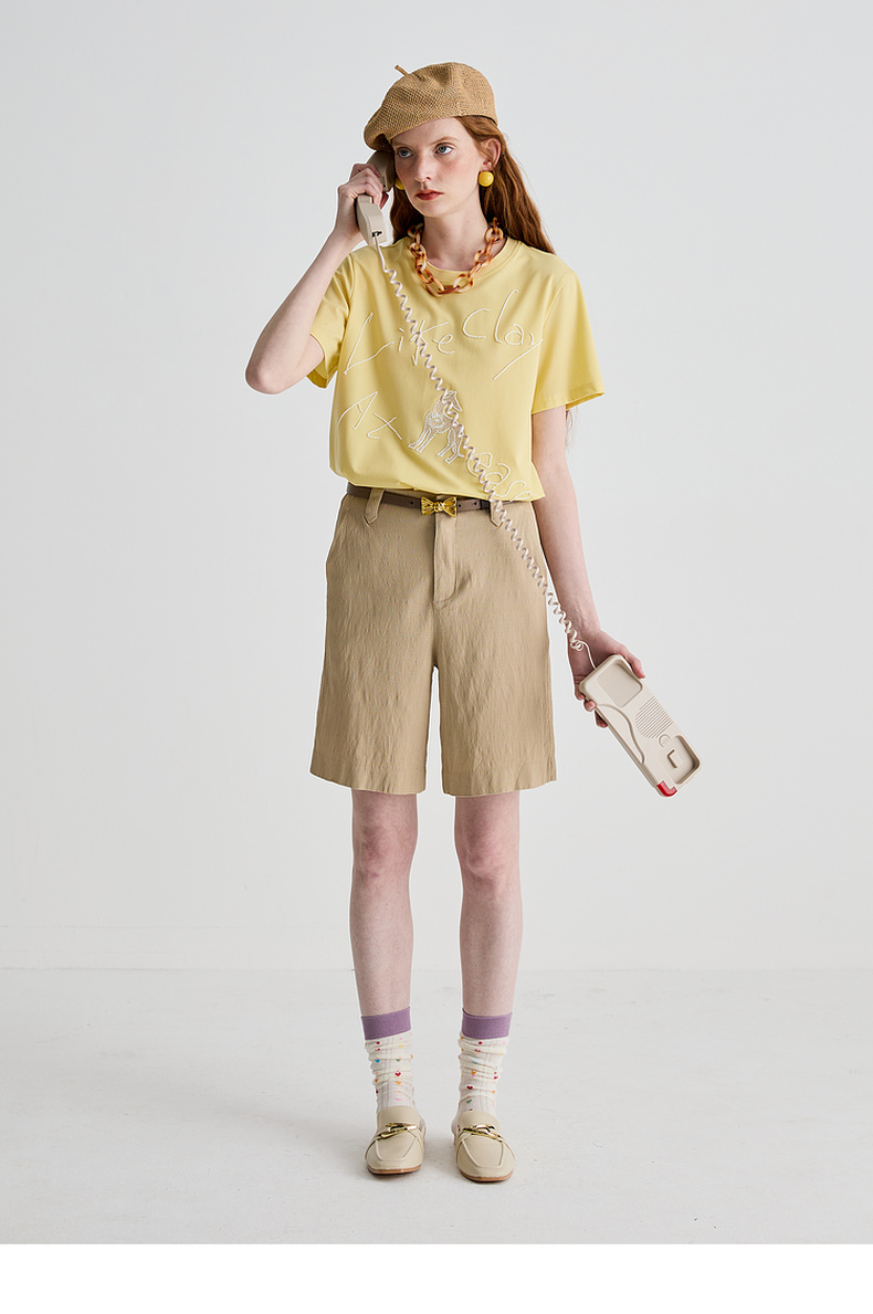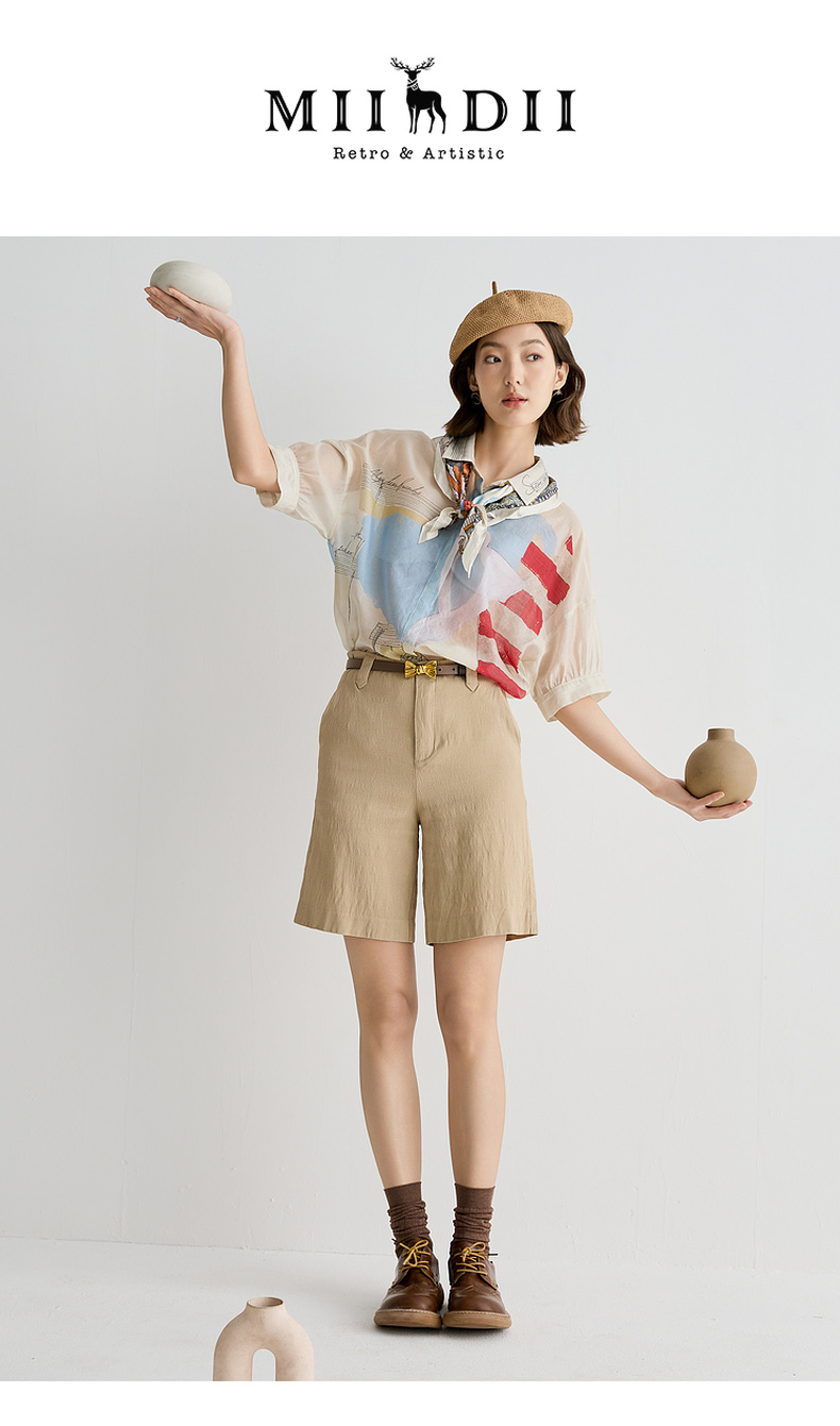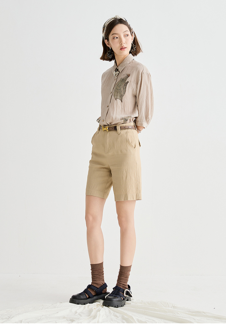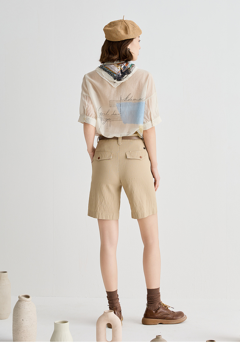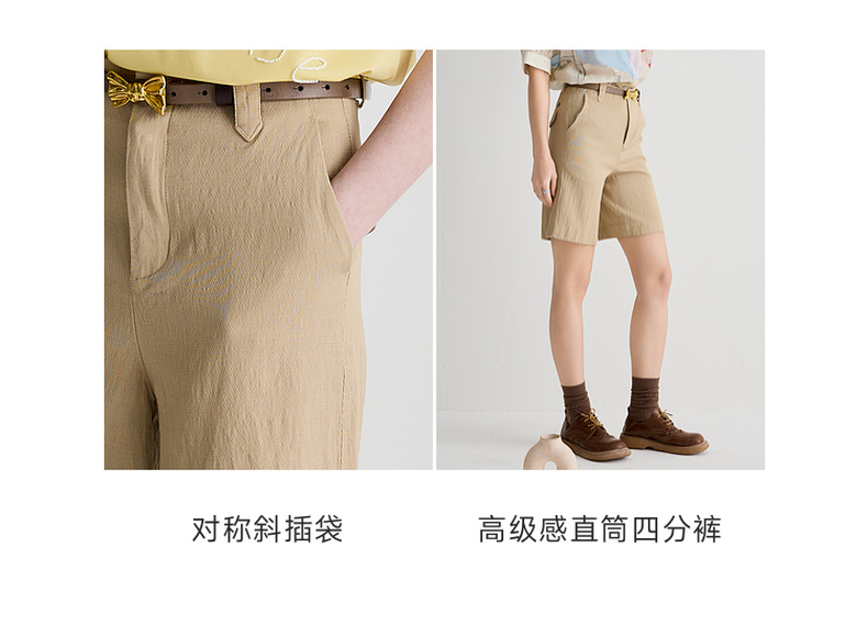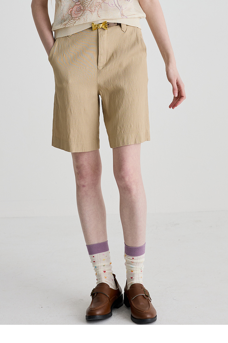 谜底短裤女2025夏新品百搭日常斜纹麻棉直筒裤合身裤子252MK0690