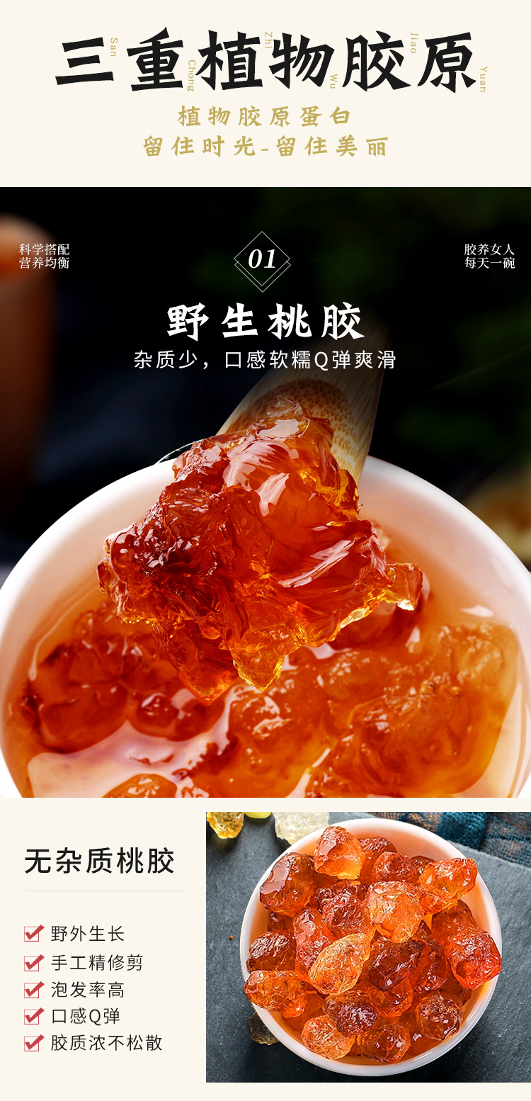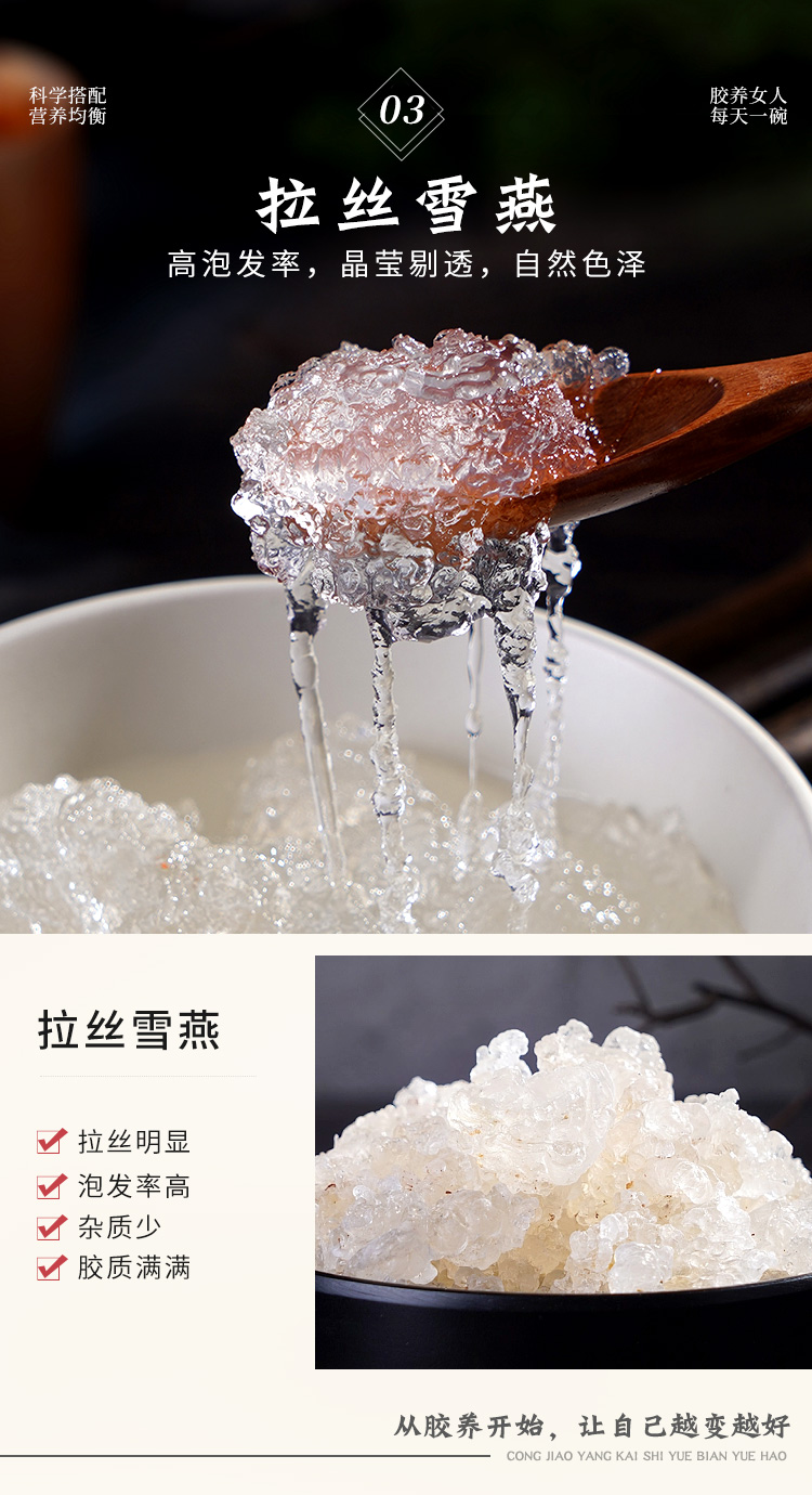 在菌屋 云南养颜三胶组合 桃胶300g 雪燕200g 皂角米250g 胶质满满软糯Q弹