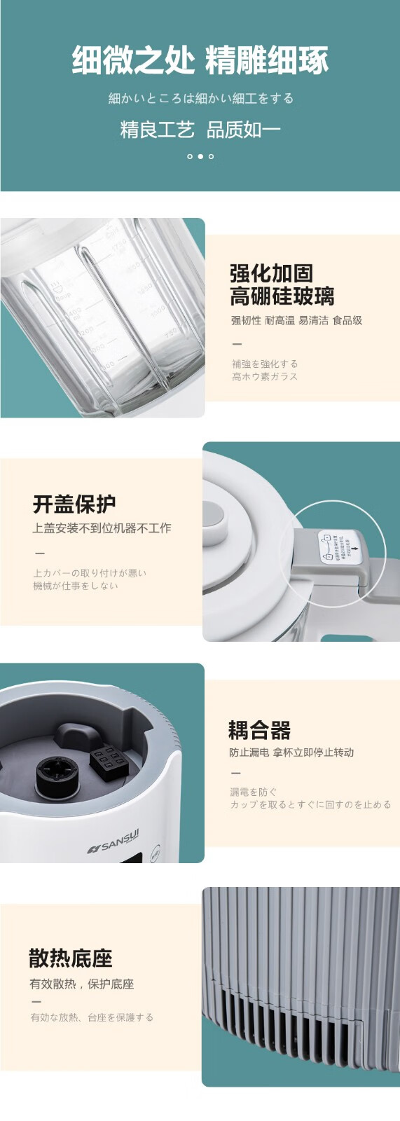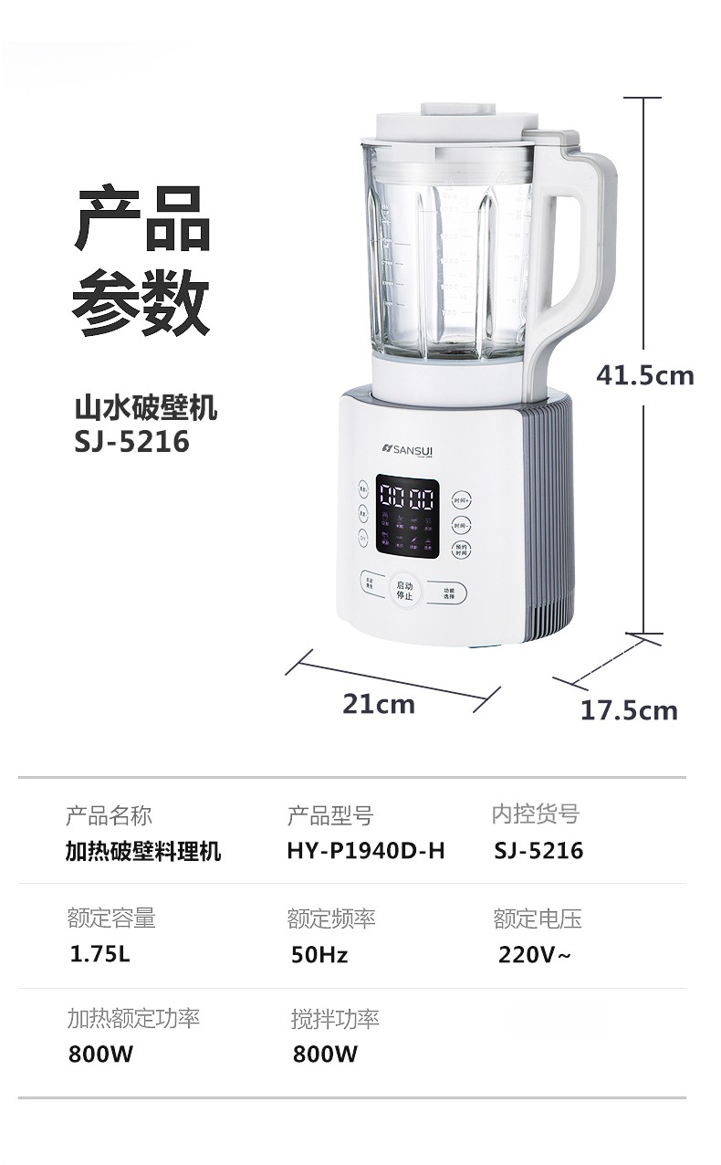 山水(SANSUI)料理机榨汁机破壁机SJ-5216 白色