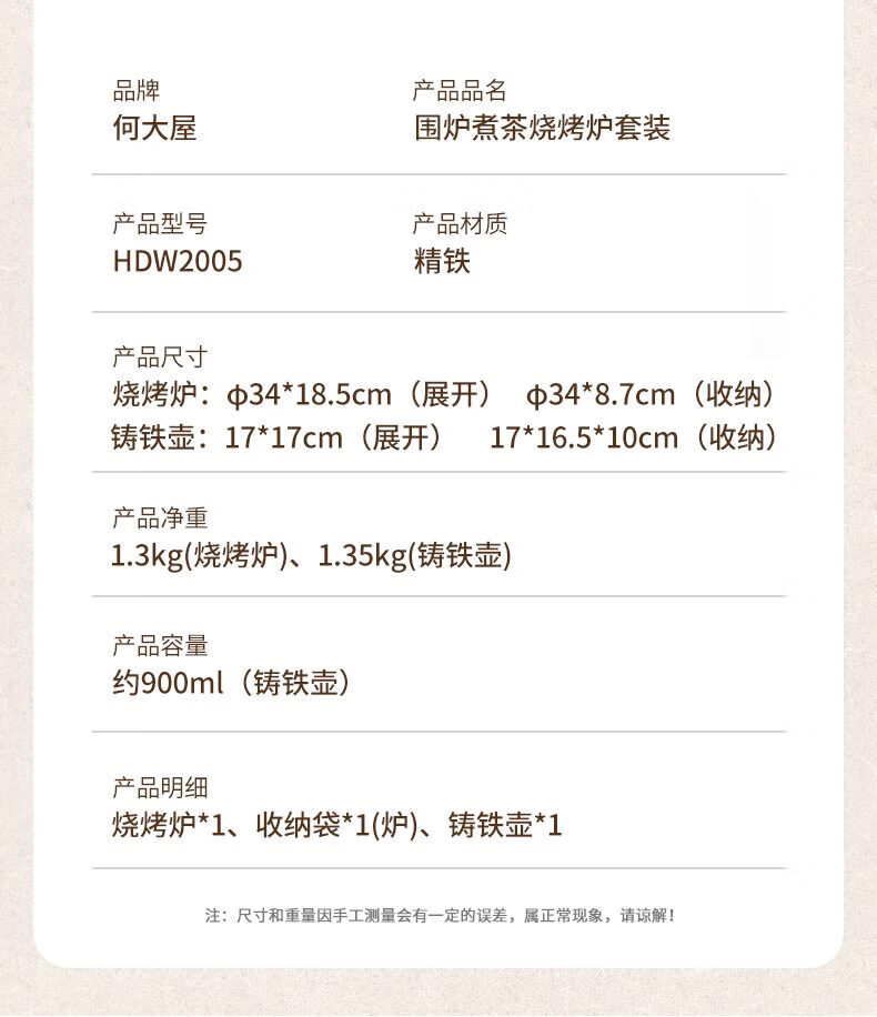 何大屋(Hodtown)围炉煮茶烧烤炉套装HDW2005