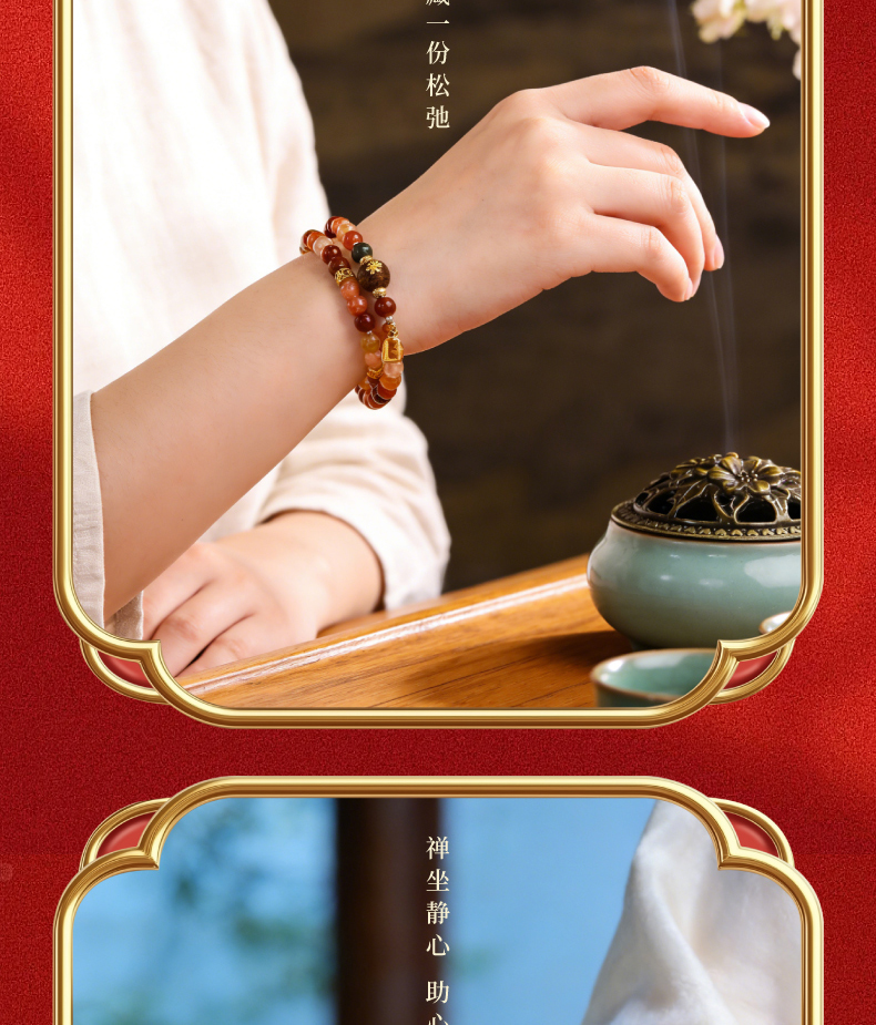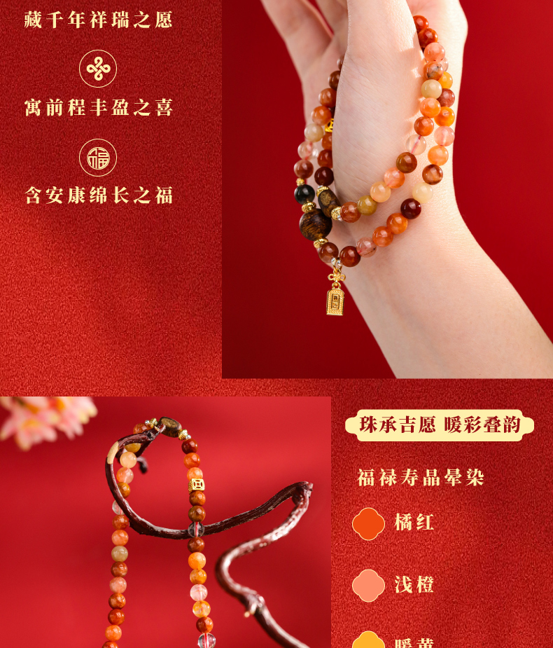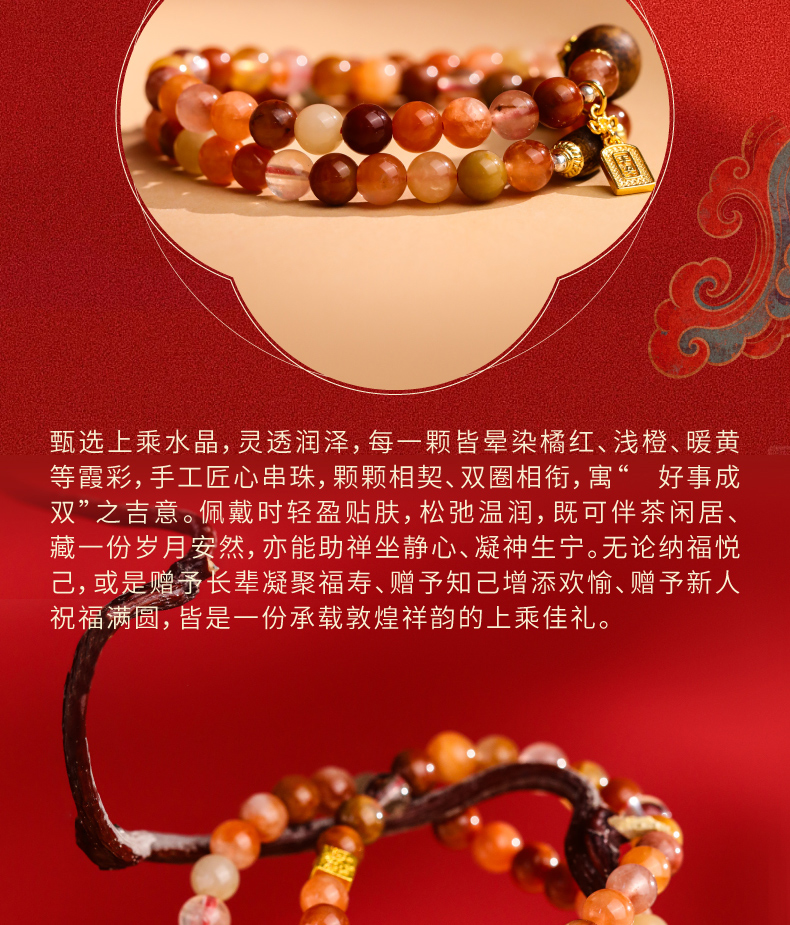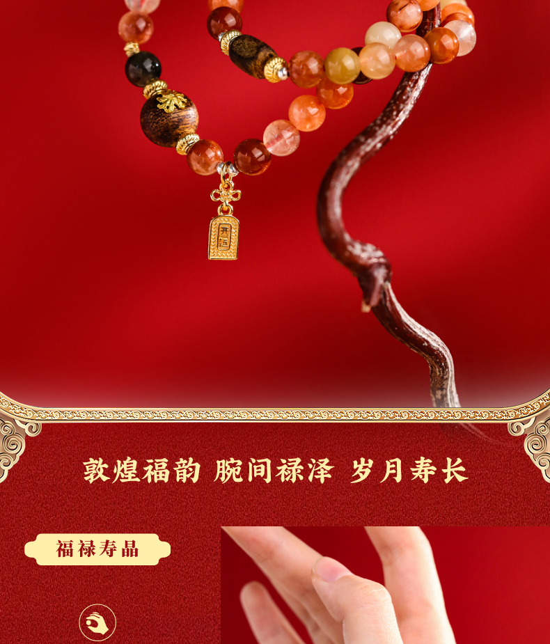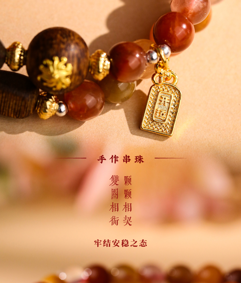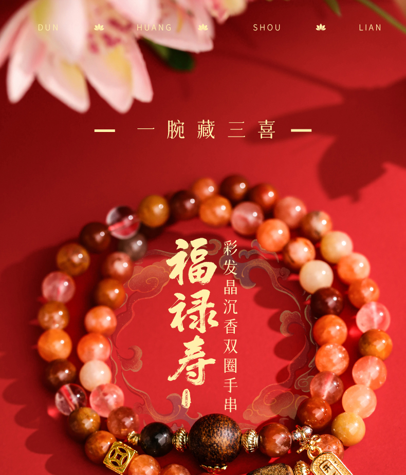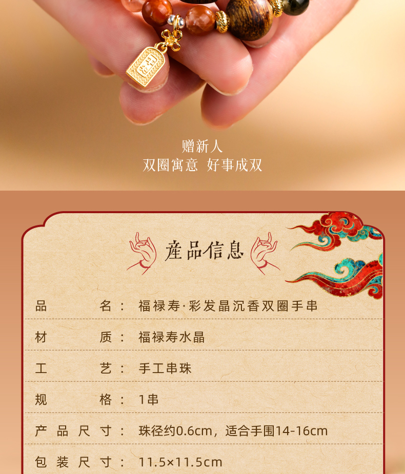 【福禄寿·彩发晶沉香双圈手串】敦煌福泽福禄寿彩发晶黄水晶貔貅沉香手链串珠女轻奢高级感手串
