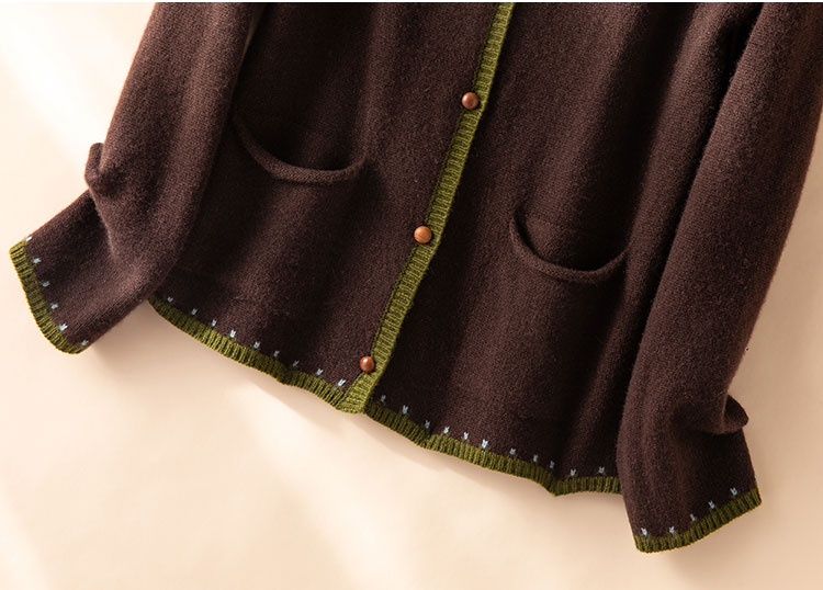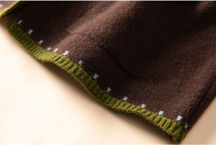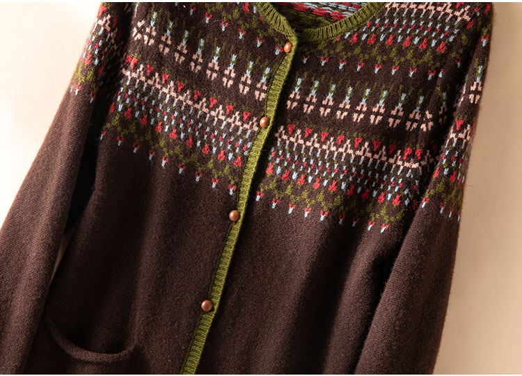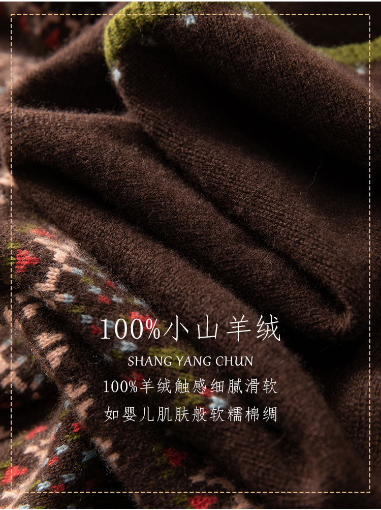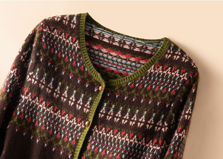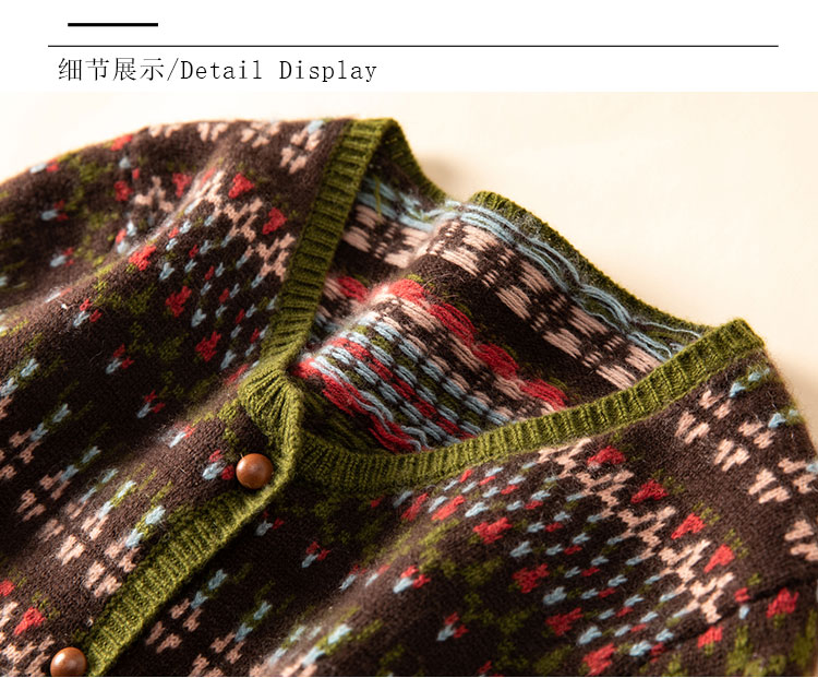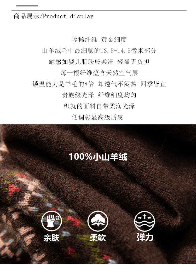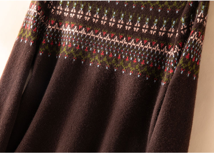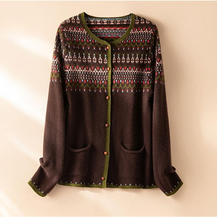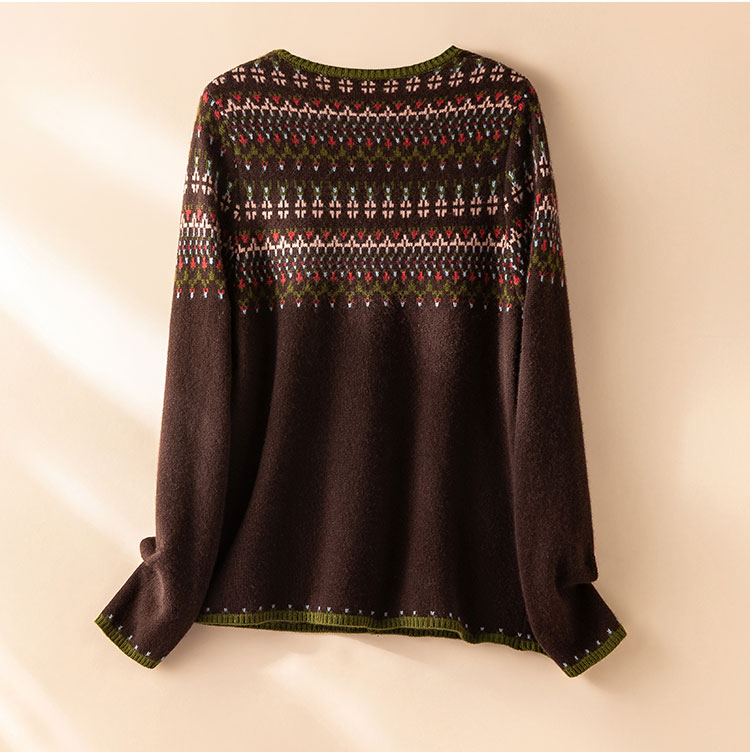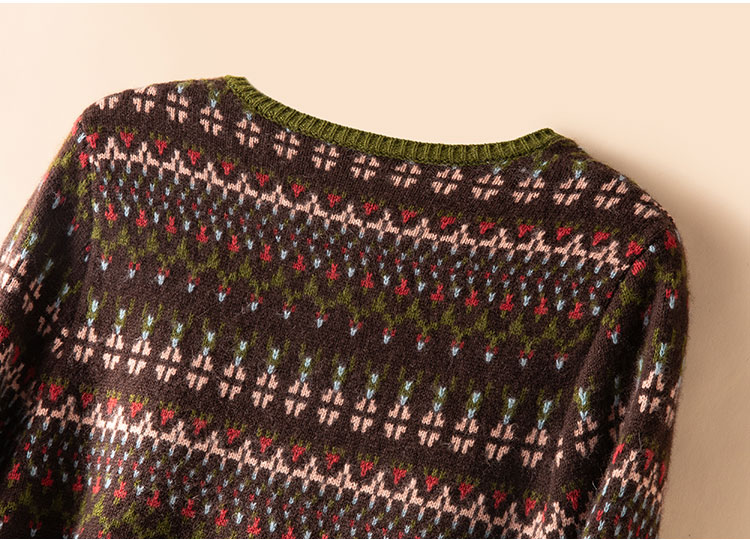 100%Baby小山羊绒~咖色费尔岛提花圆领羊绒开衫BABY250283