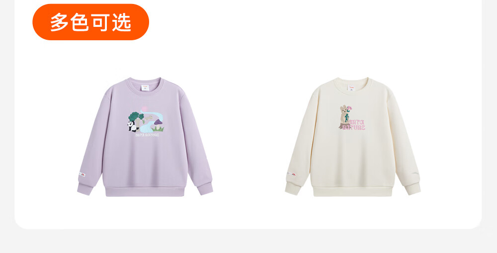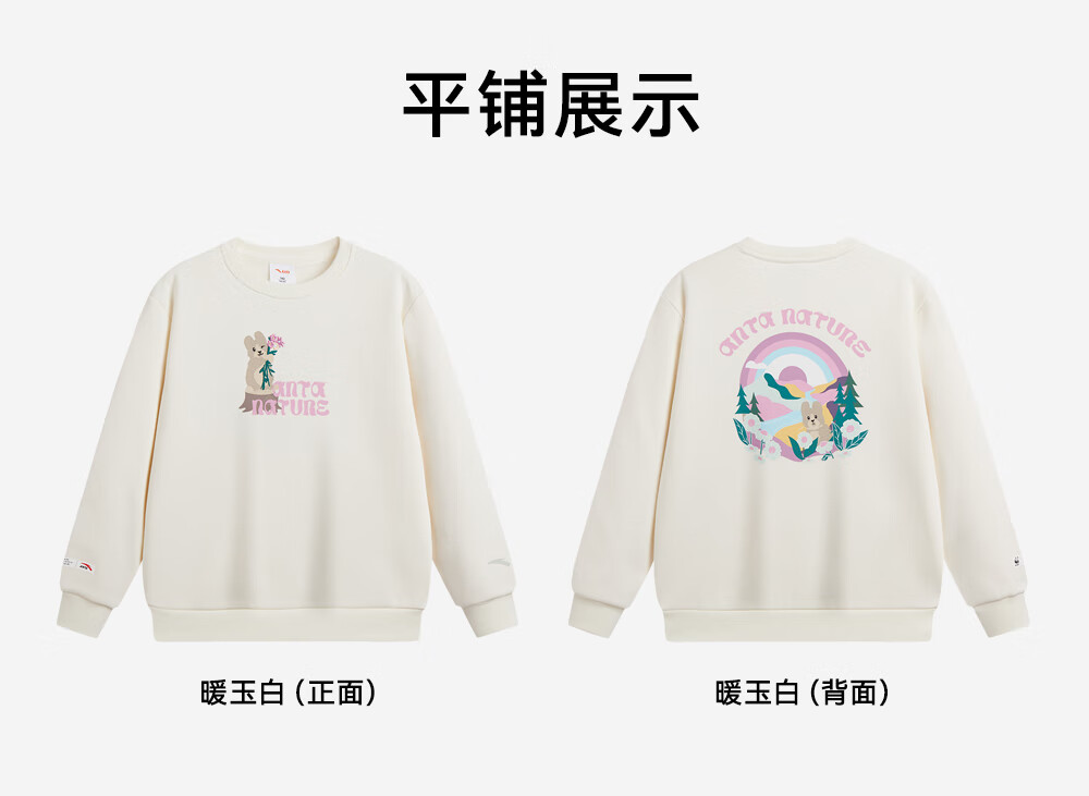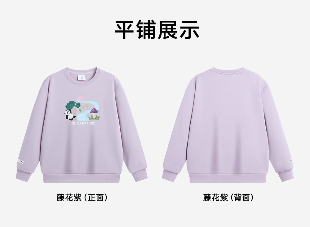 安踏儿童卫衣女大童零碳莱赛尔秋季新品WWF印花户外套头衫362546704N
