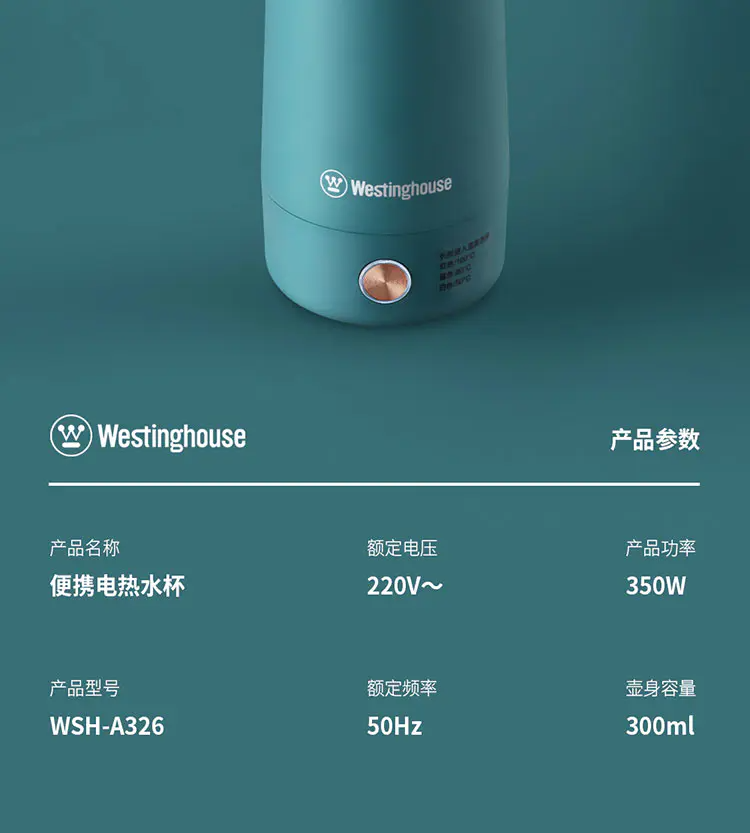 Westinghouse西屋便携电热水杯 300ml WSH-A326