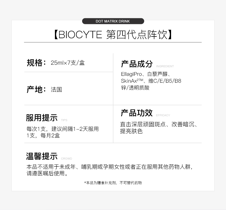 【营养师专属G】法国碧维斯Biocyte口服超皮秒 净剿窝表双斑点阵饮 7支/盒(新品)