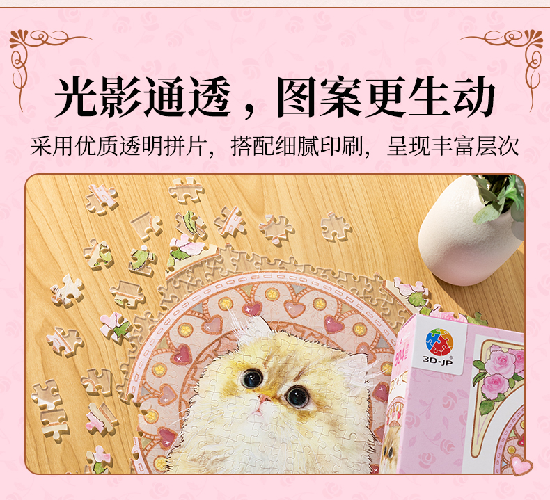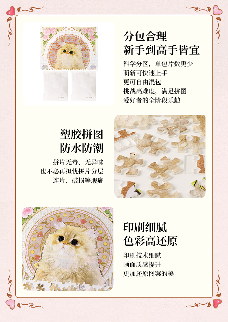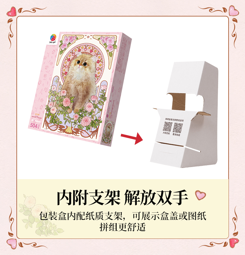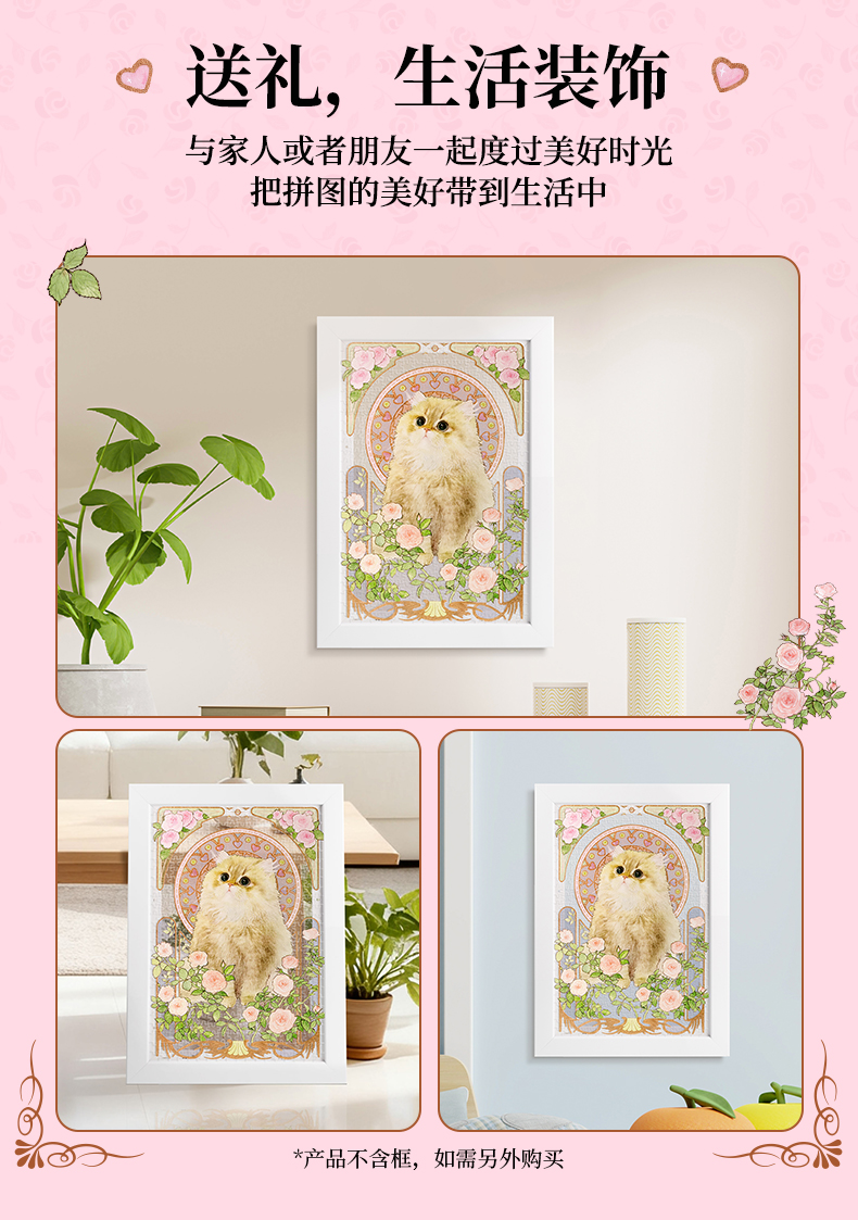 504片 平面塑料拼图 U1125 Giaciu-穆夏风猫咪·月季金渐层【Showpiece L】