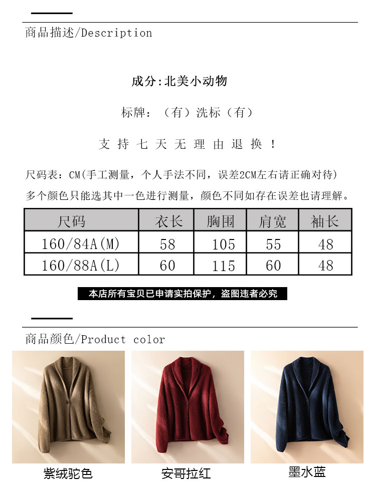 北美小动物系列~重磅加厚慵懒老钱风一粒扣针织开衫外套女XDW260543