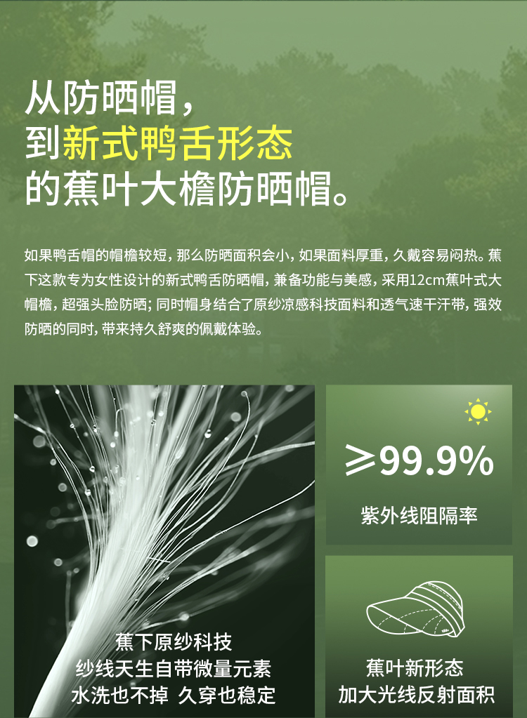 蕉下女士黑胶大檐鸭舌防晒帽BM53024