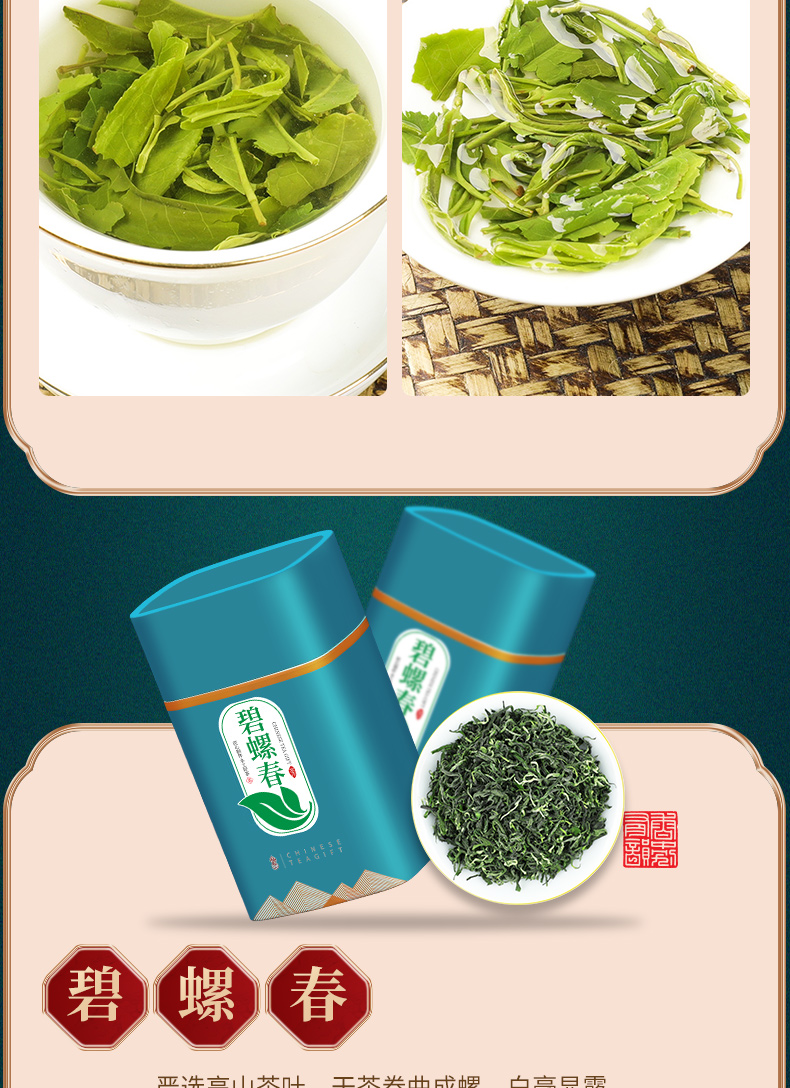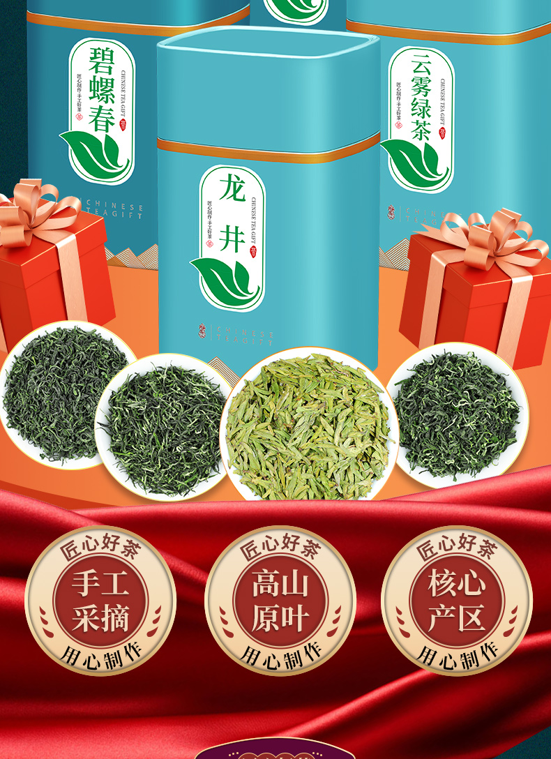强韵四大绿茶碧螺春新茶组合装罐装散装500g送杯子