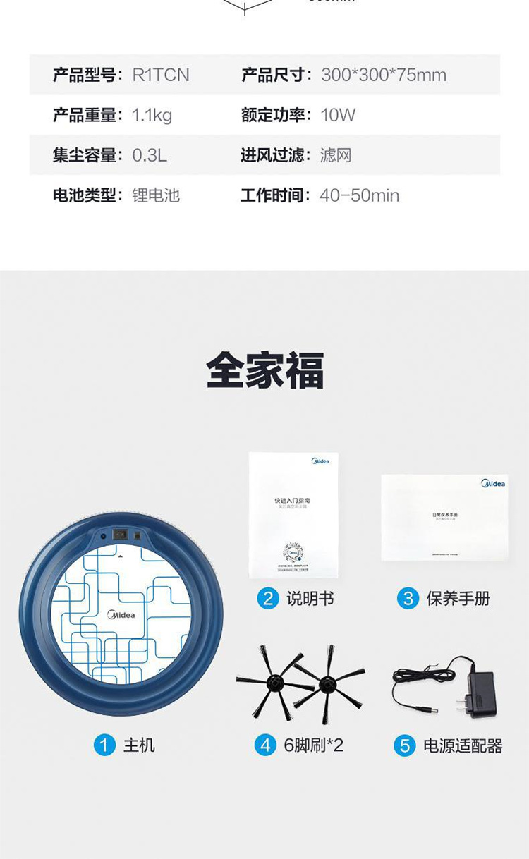 美的 扫地机器人 智能家用机器人 APP远程遥控 R1TCN