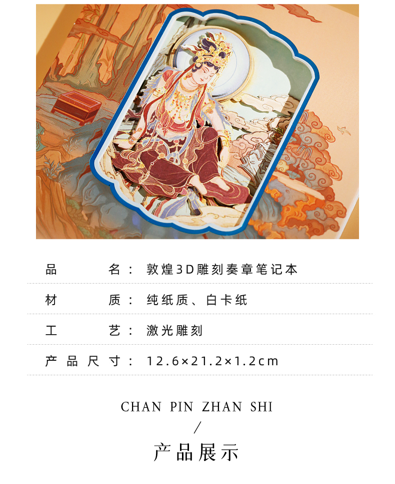 敦煌研究院 【水月妙境立体奏章本】 博物馆文创笔记本创意本子3d镂空办公室记事本手账本学生笔记本文创纪念品
