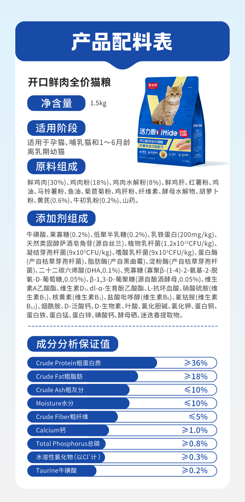 【雷米高】活力泰鲜肉系列功能日粮开口幼猫全价幼猫粮1.5kg 活力泰开口鲜肉全价猫粮1.5kg