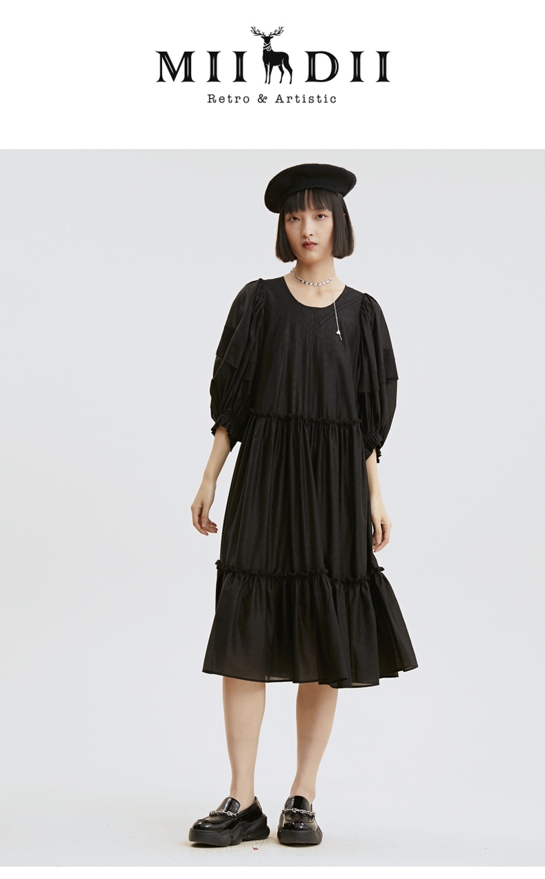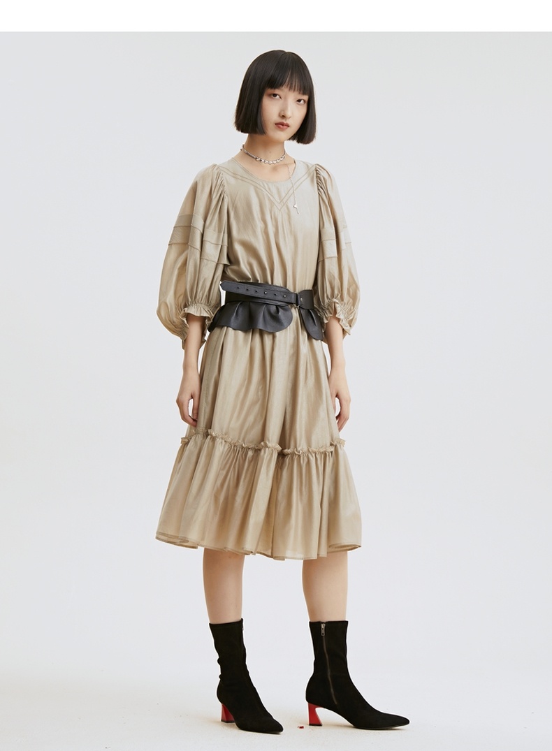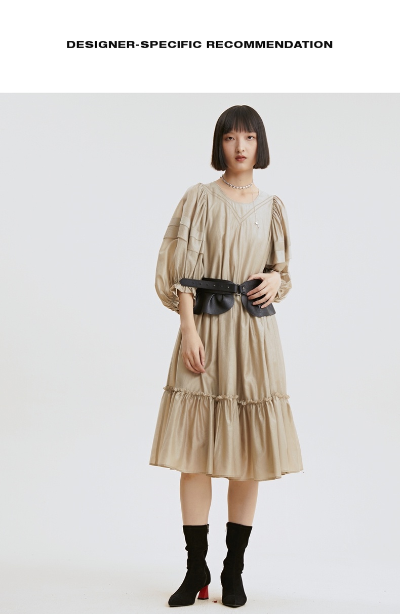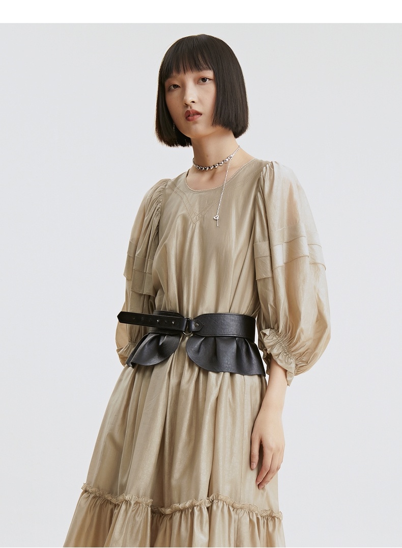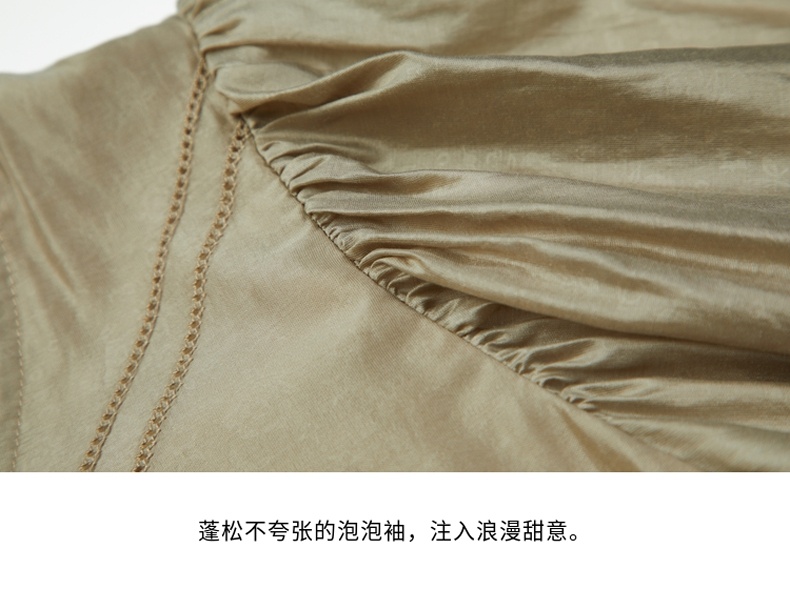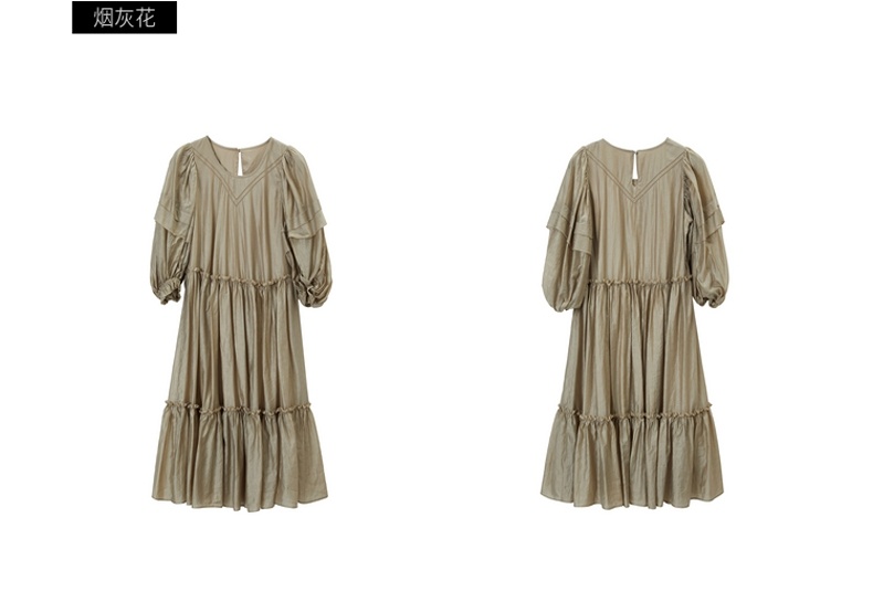 谜底2021秋季新款复古浪漫泡泡袖A型宽松天丝长袖连衣裙213ML1826