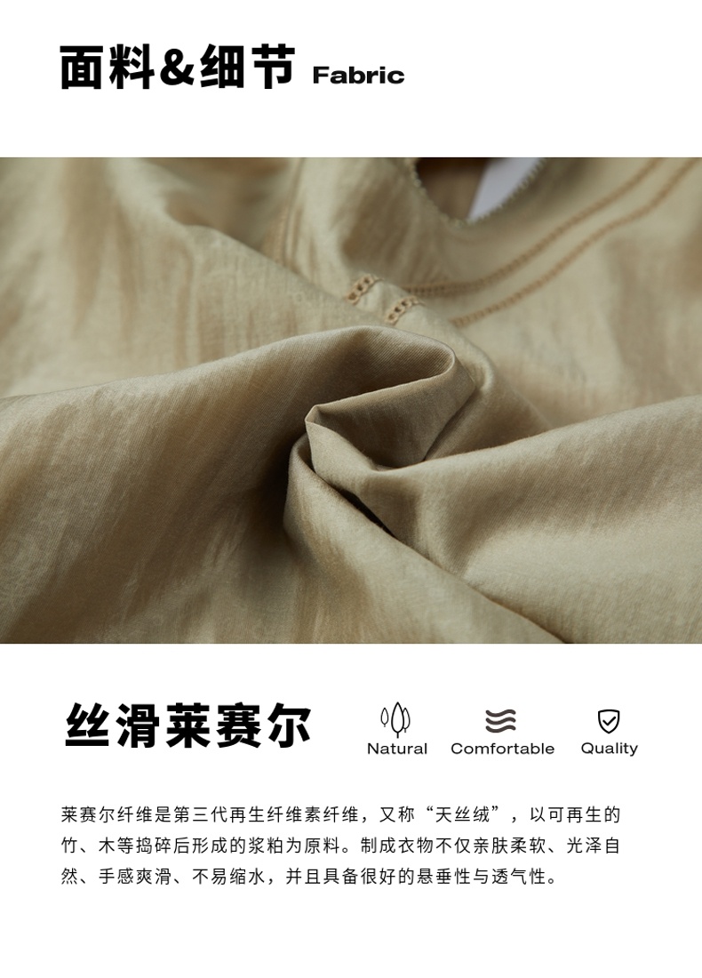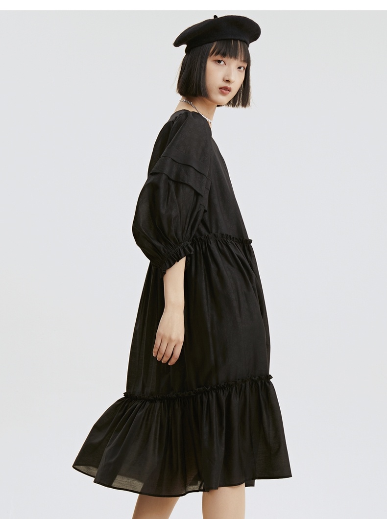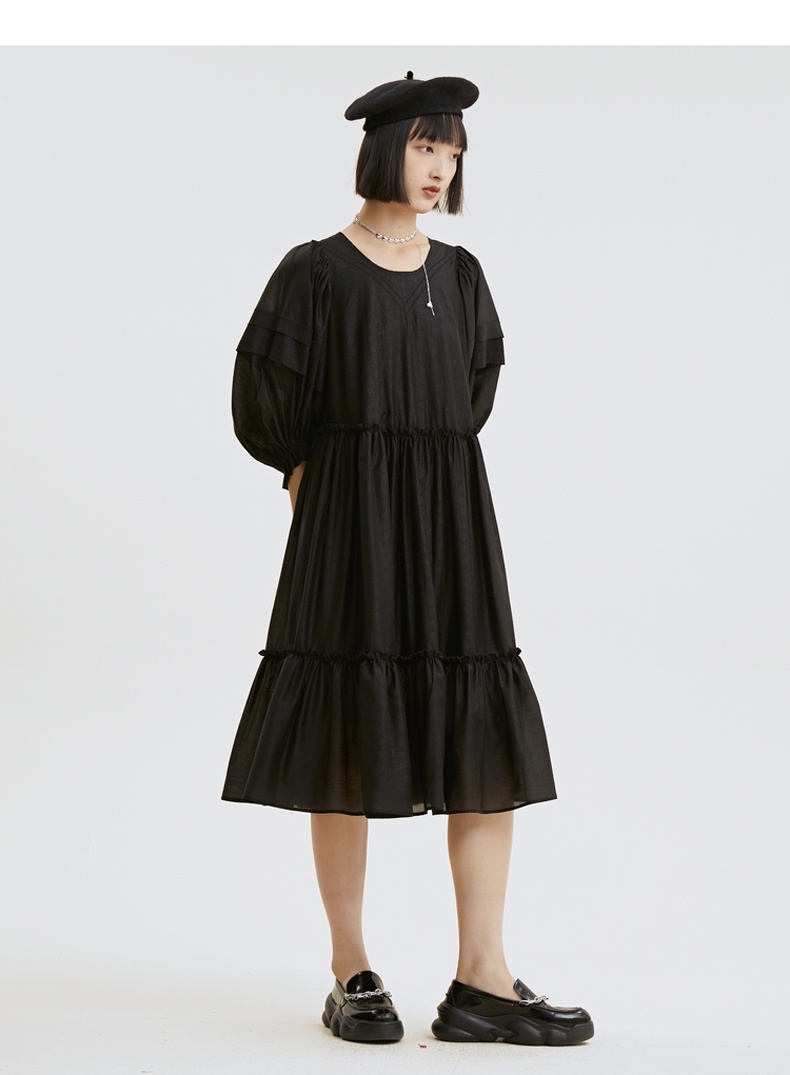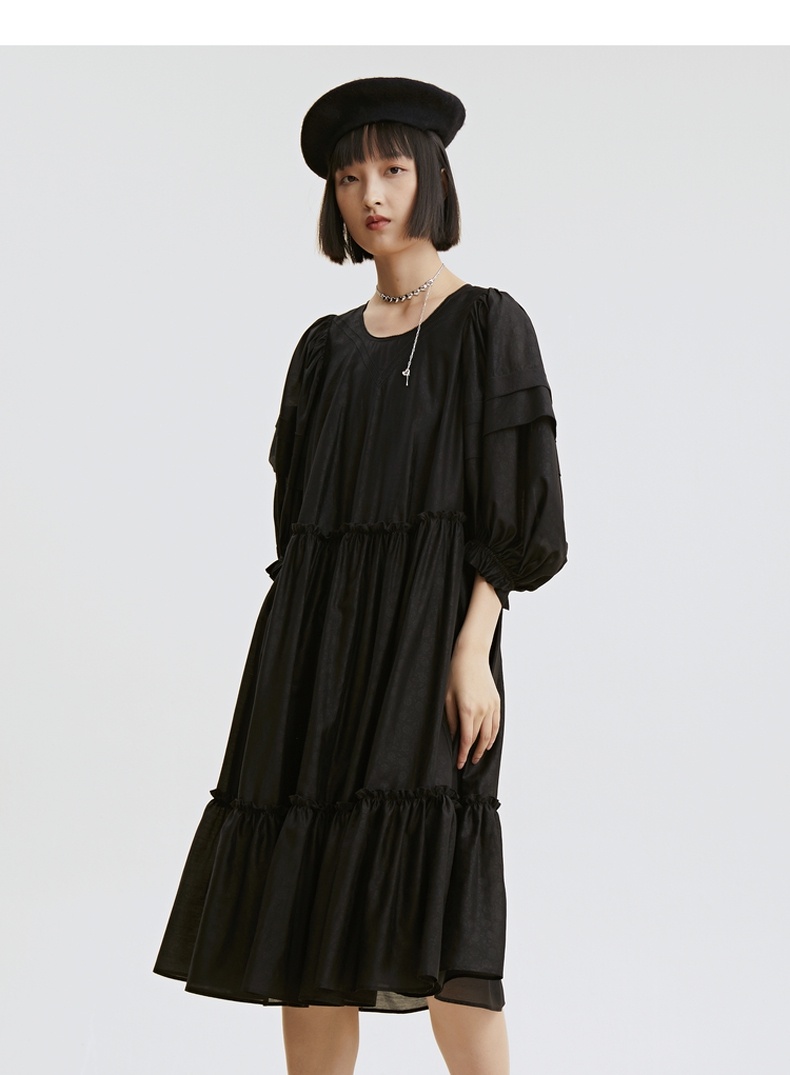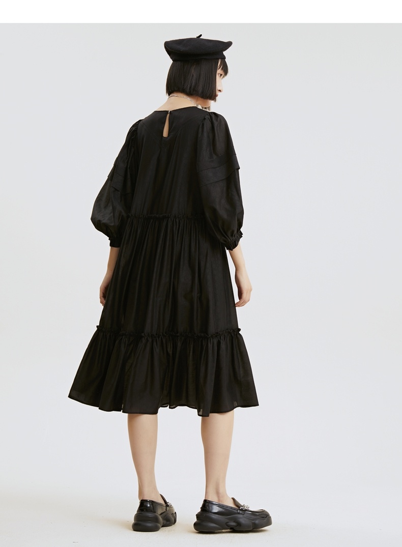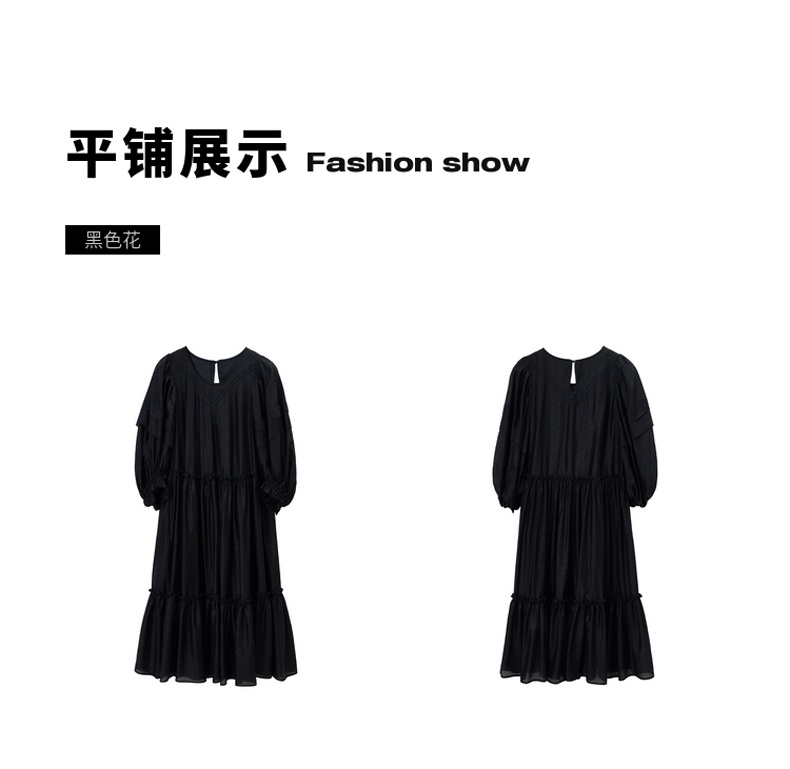 谜底2021秋季新款复古浪漫泡泡袖A型宽松天丝长袖连衣裙213ML1826