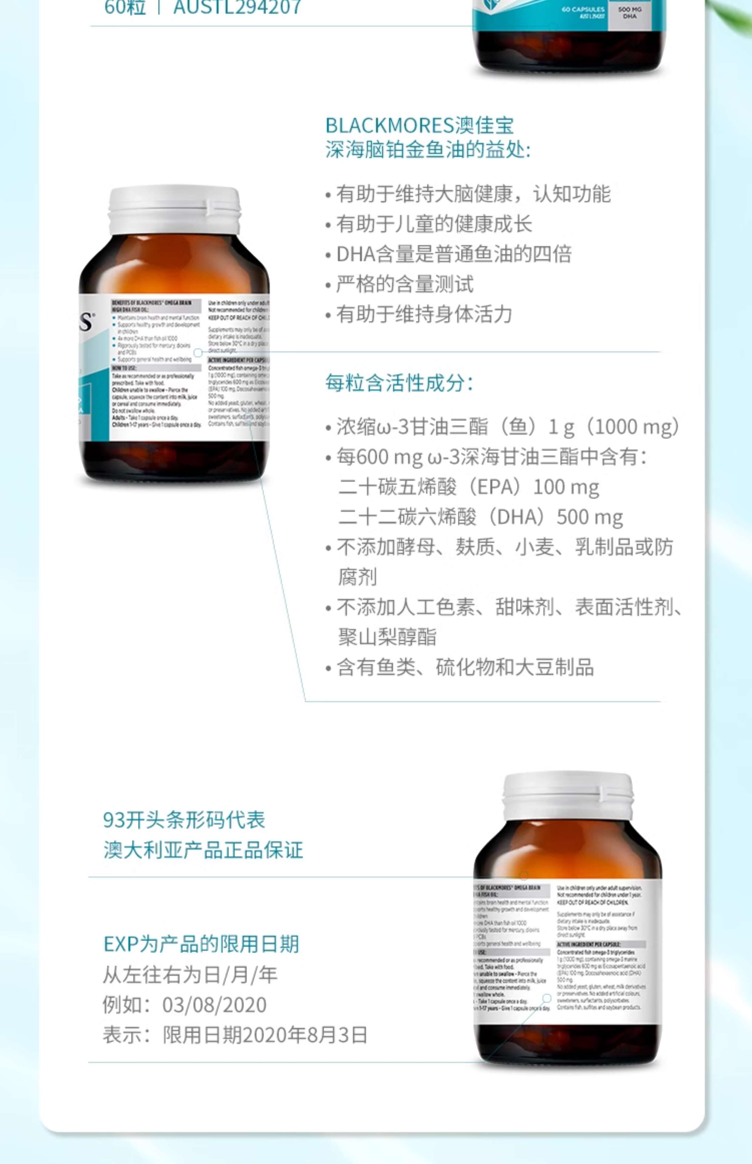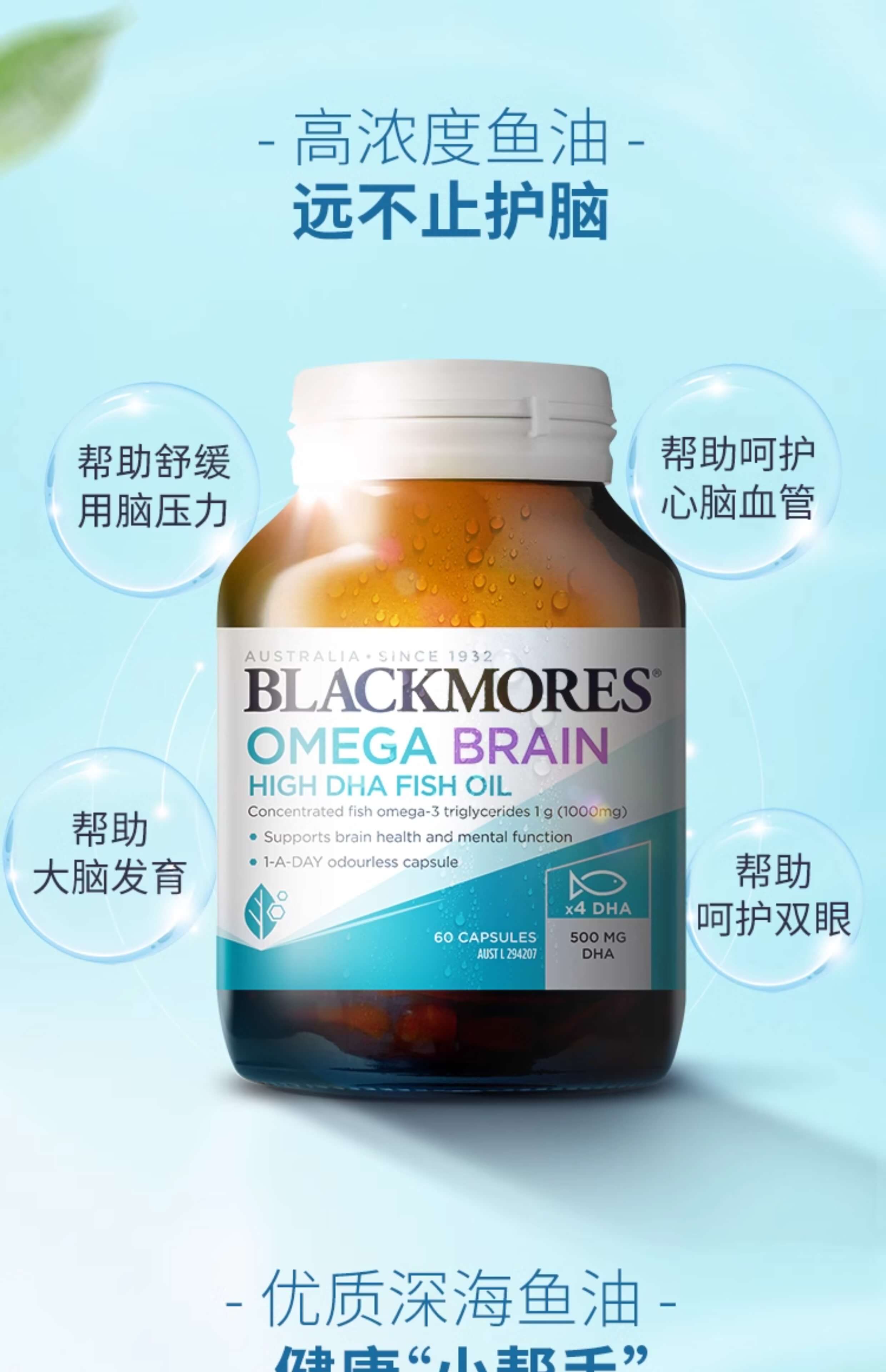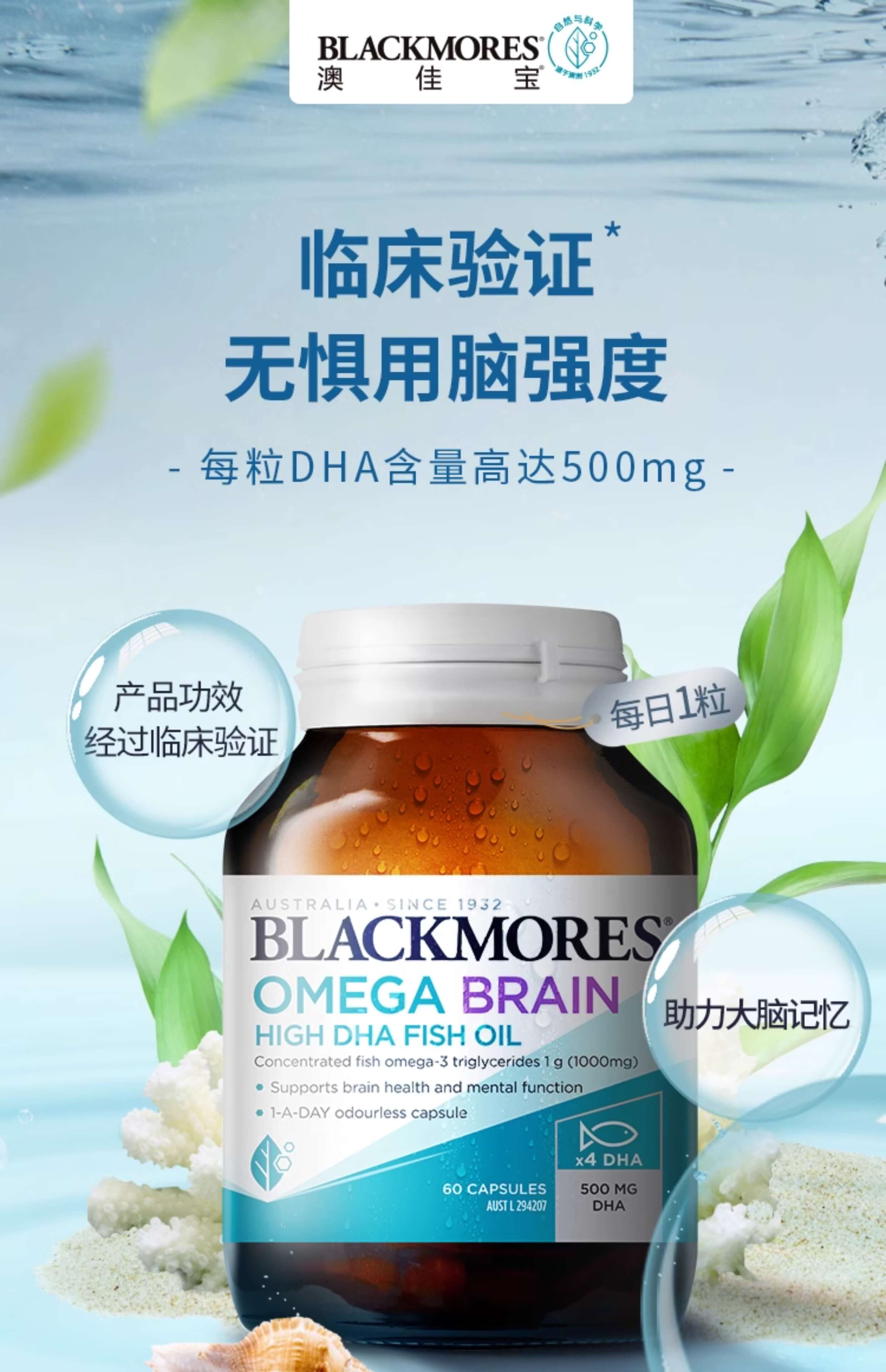 澳佳宝Blackmores高浓度DHA 4倍无腥味深海鱼油60粒