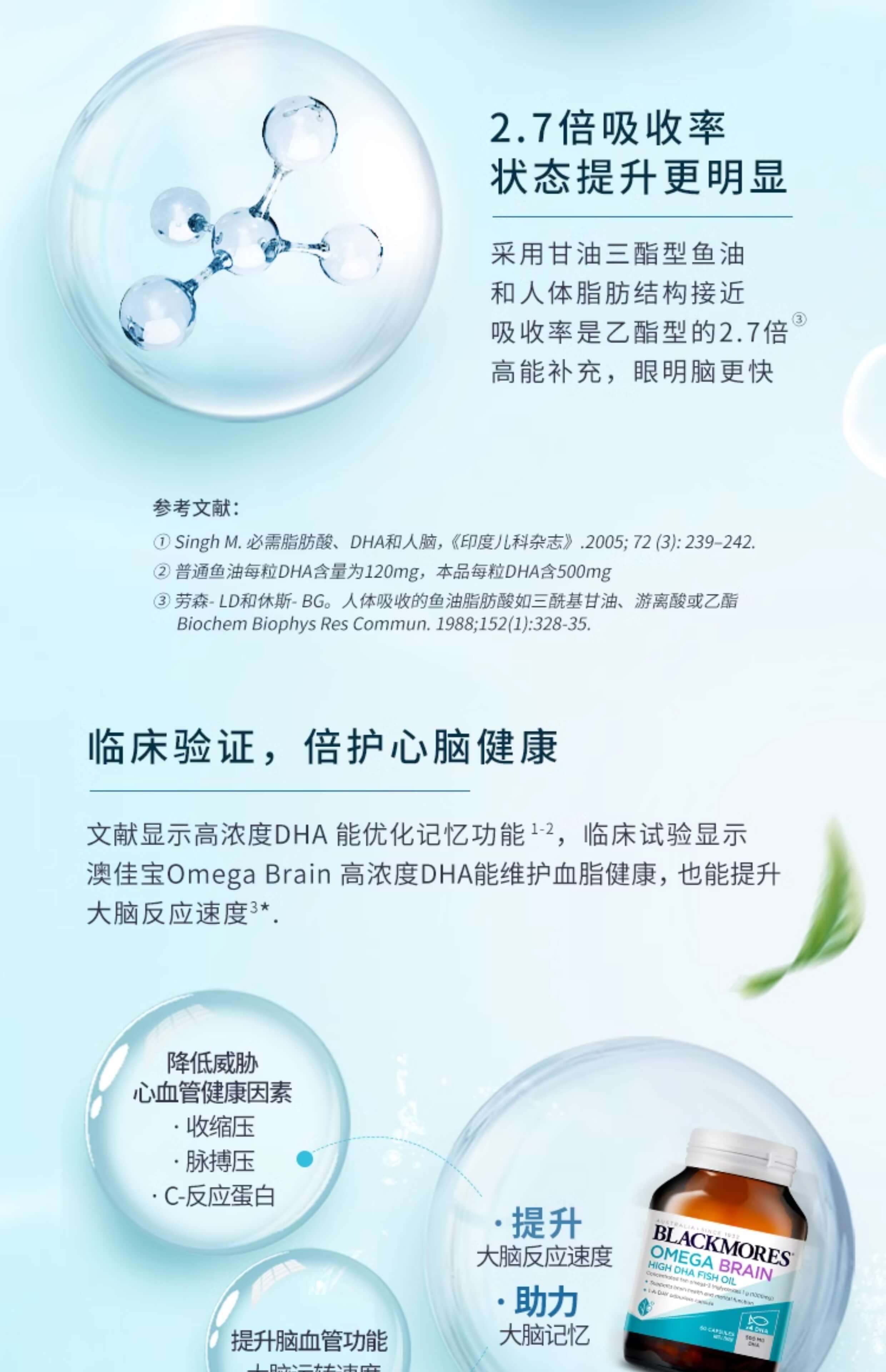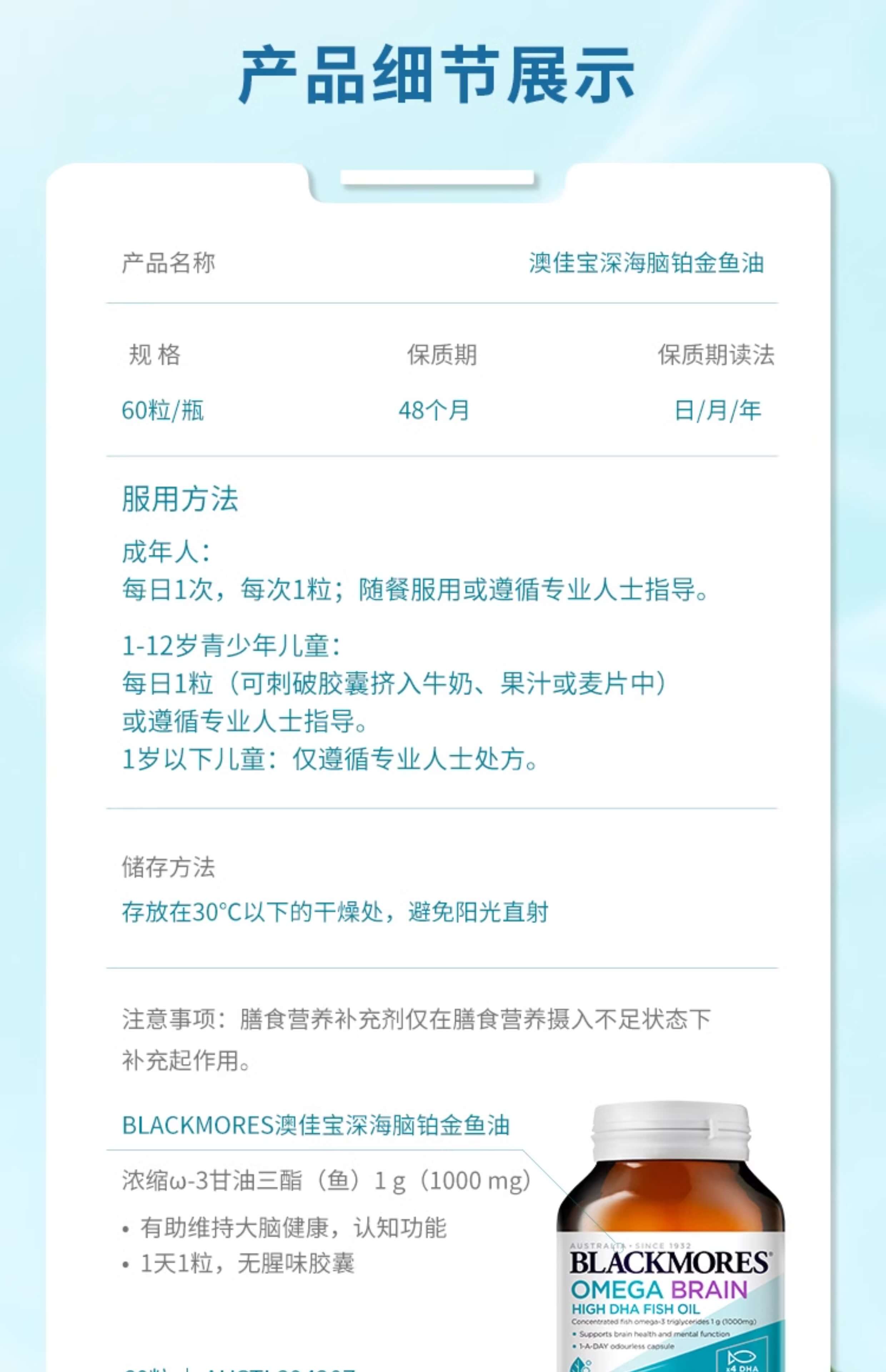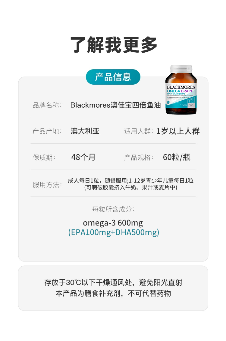 澳佳宝Blackmores高浓度DHA 4倍无腥味深海鱼油60粒