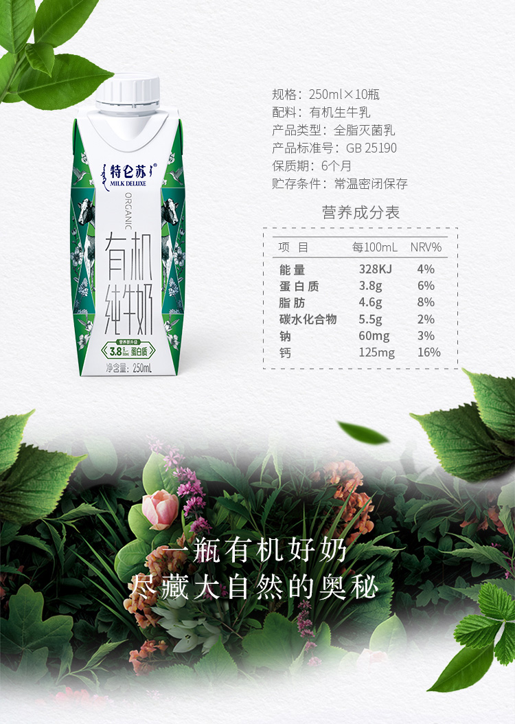 蒙牛特仑苏有机纯牛奶梦幻盖250ml*10盒