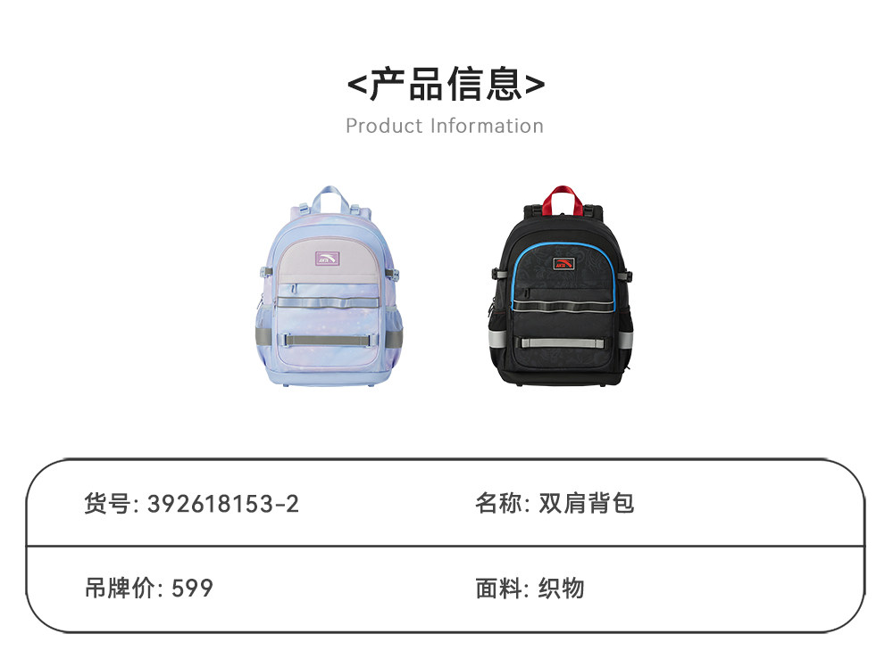 商场同款安踏儿童书包飞鱼4.0减负书包小学生书包男双肩包女书包392618153
