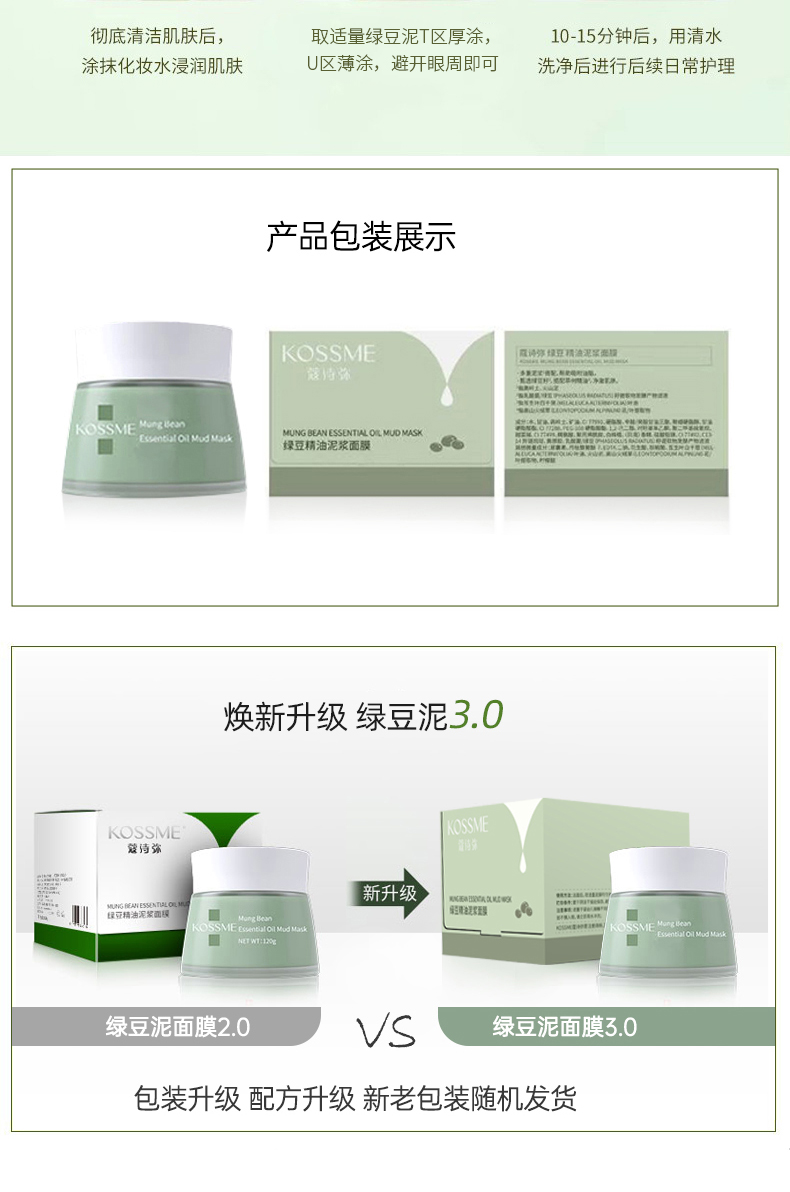KOSSME蔻诗弥绿豆精油泥浆面膜120g